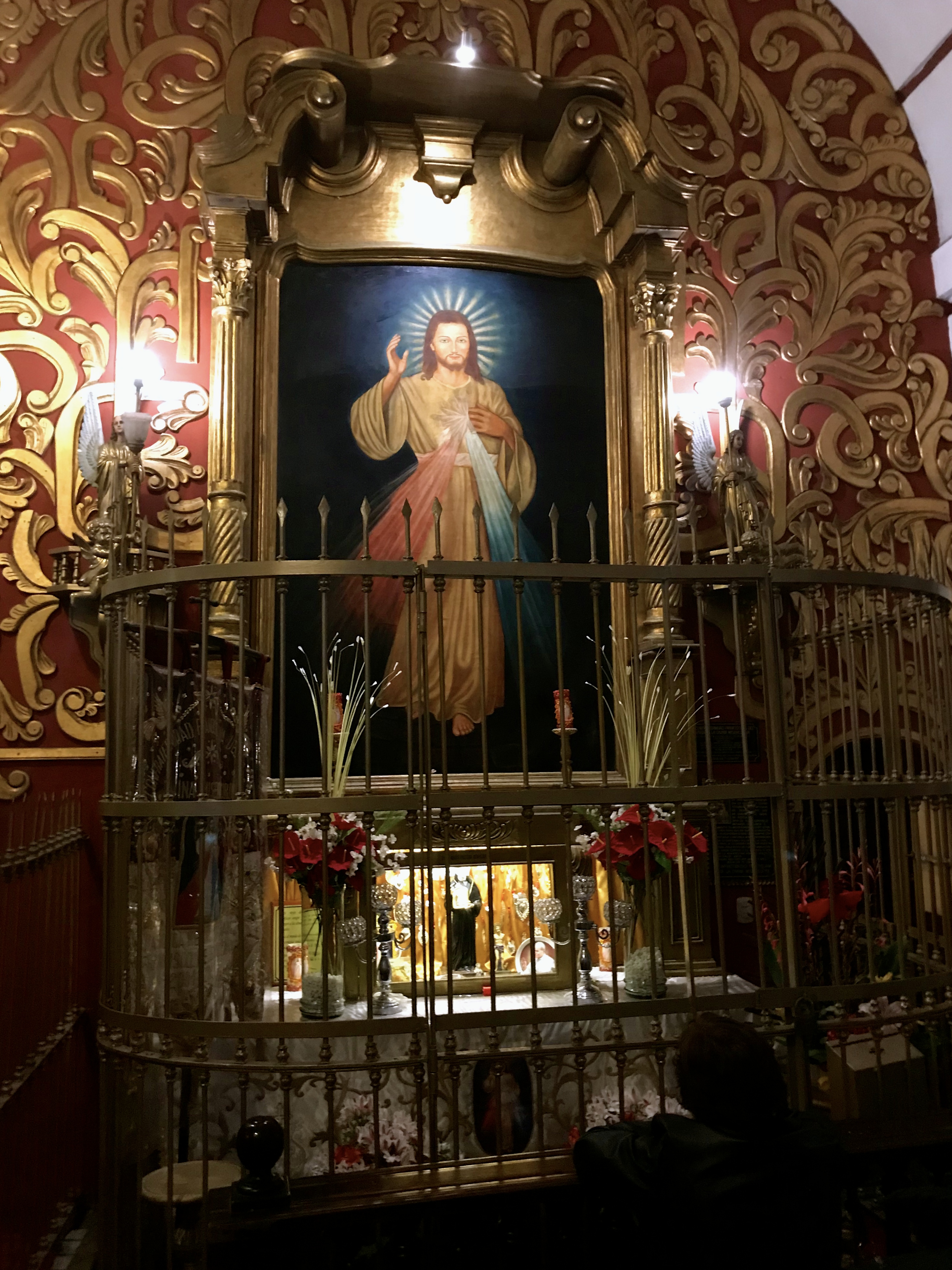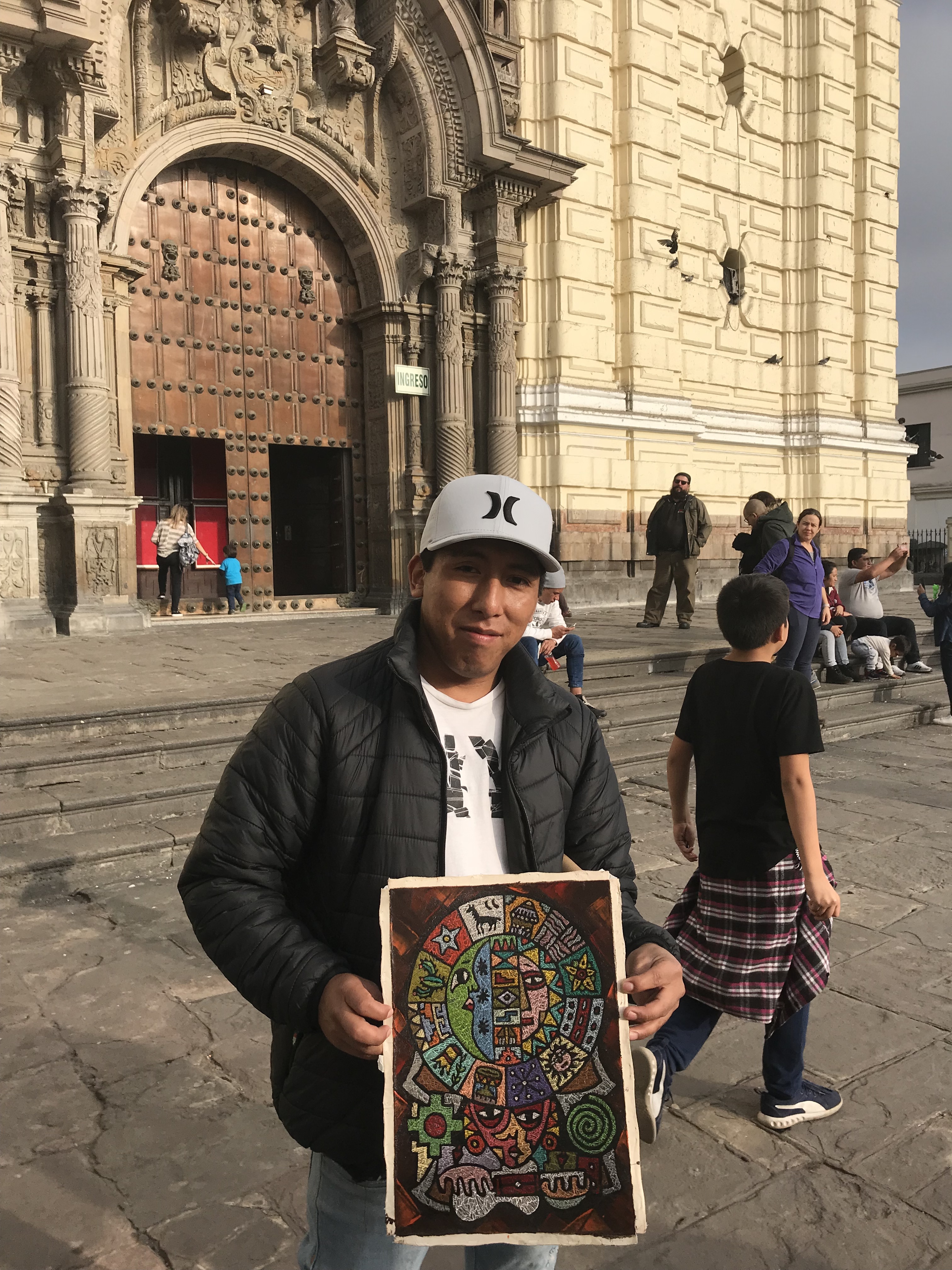 Funny Story: A kid sitting outside the catacombs was selling artwork, so he saw me looking and approached me (see picture). Nice enough kid, but I could tell the artwork were prints except for a few I could not tell for sure. He said it was his artwork. I admired it and asked how much; he said 60 soles and your hat. I was wearing an Under Armor hat I had just bought for the trip and said I’ll give you 60 sole, but you’re not getting my hat. I purchased the painting, and he said I would look into my heart and change my mind, and he would wait for me to leave the catacombs. After over 2 hours in the church and Catacombs, as I came back outside, he was. He came up and said I have a gift for you, my friend, and handed me a red hat that said Peru. Of course, I took my hat off and gave it to him.