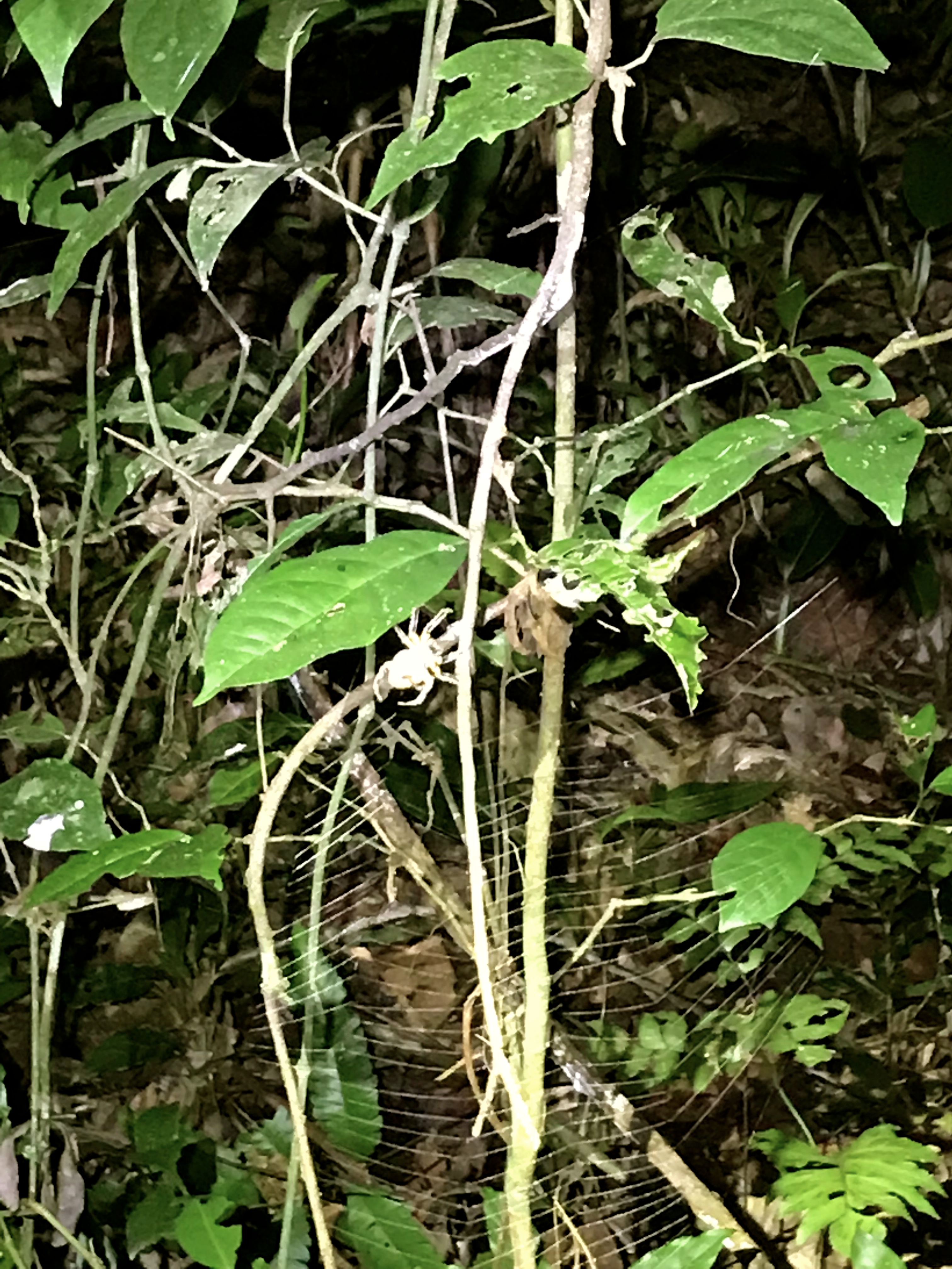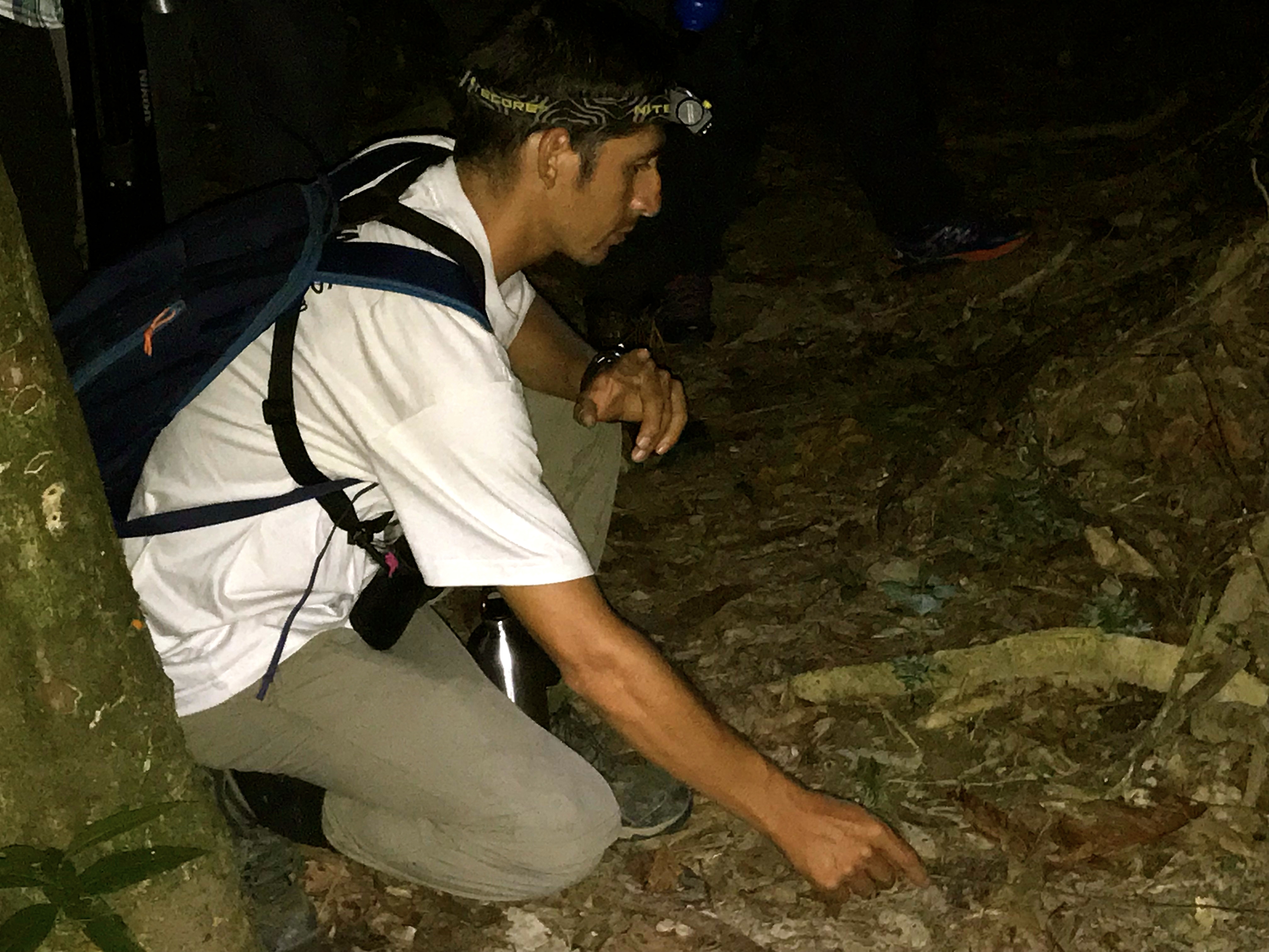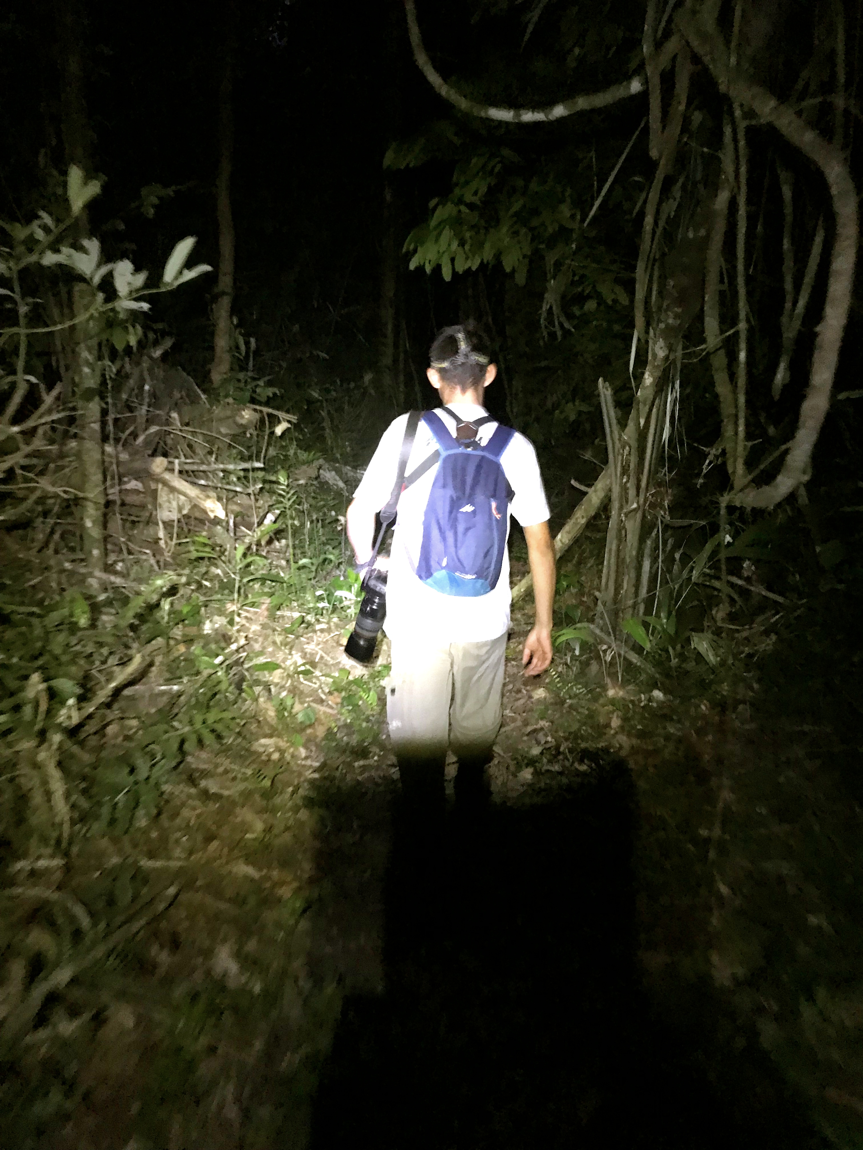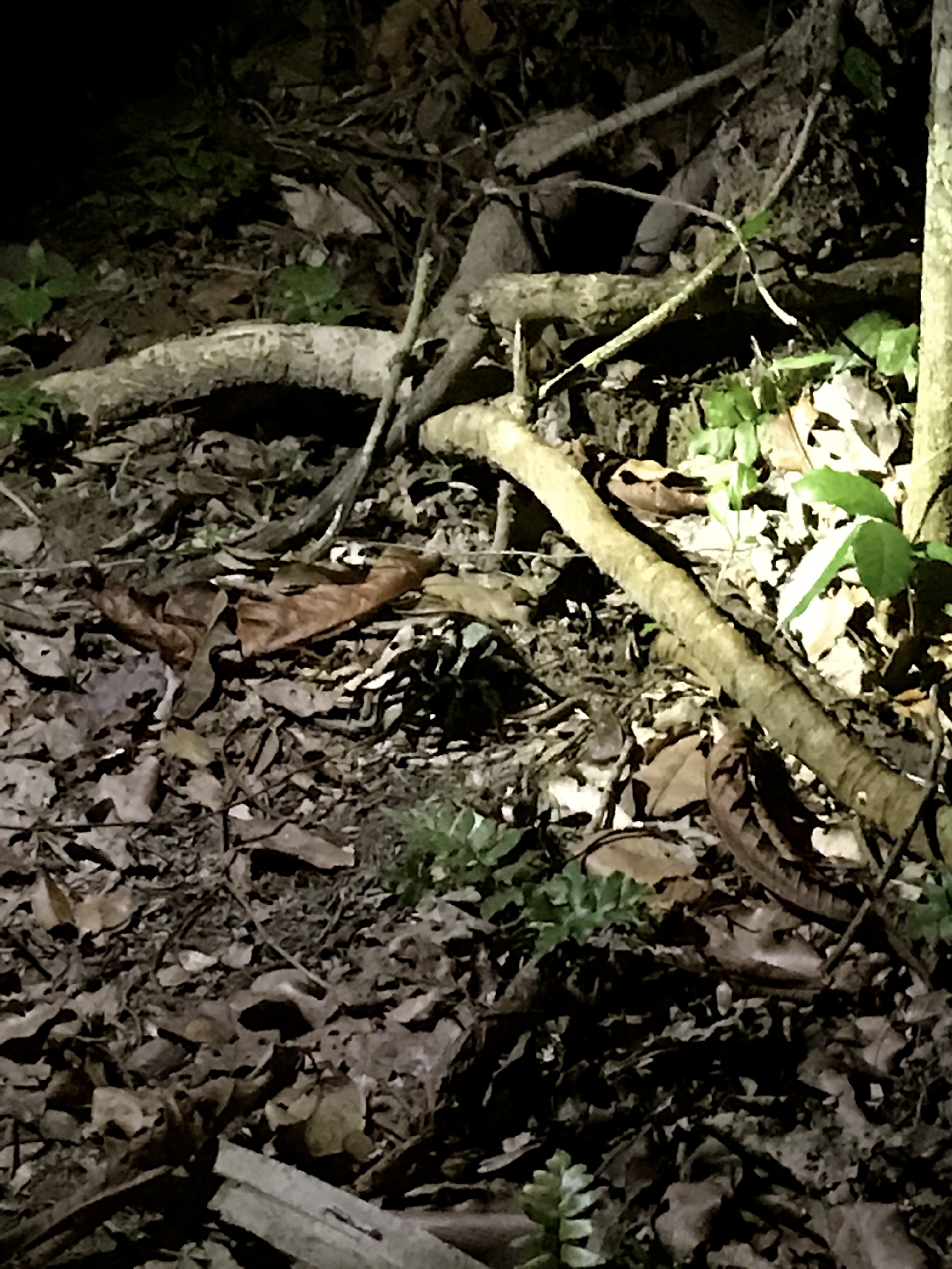 I headed back to the hut to prepare for the night Trek through the Amazon. Loaded up my backpack, put on Long sleeves shirt with a hood, pants, mosquito repellent, handkerchief, buff, headlamp, hat, and went to meet Ederson and the crew. We Headed out into the jungle, headlamp blazing. Ederson was extraordinarily aware and knew exactly what to look for as we begin spotting nocturnal animals in the dense jungle. We spotted tarantulas, orb weaver spiders, various rodents, bats, and amphibians. The sheer sounds and intensity of the Amazon jungle are overwhelming for someone who has never spent time there. We walked for a few hours until it was time to head back to camp; as you walked down the trail, you could see thousands of eyes as Ederson explained they were mostly all spiders and stopped and used a stick to coax a tarantula out of its den.