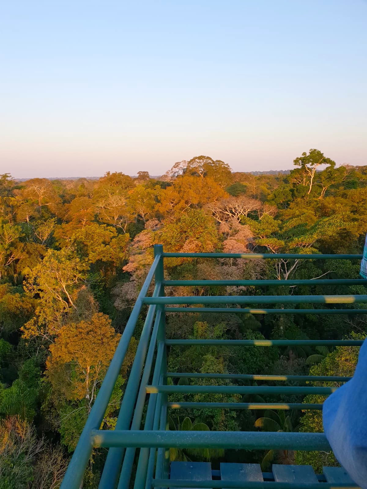 We met for dinner before we headed to the observation tower in the middle of the Amazon. The observation tower was about an hour hike and stood about 100 ft high. I felt it was safe and proceeded to the top. It was quite a trip up the steps as the tower swayed and wobbled considerably. Once at the top, you could see for miles nothing but amazon jungle as far as the eye could see. We watched the sunset and saw Macaws, parakeets, many other birds, and wildlife.
