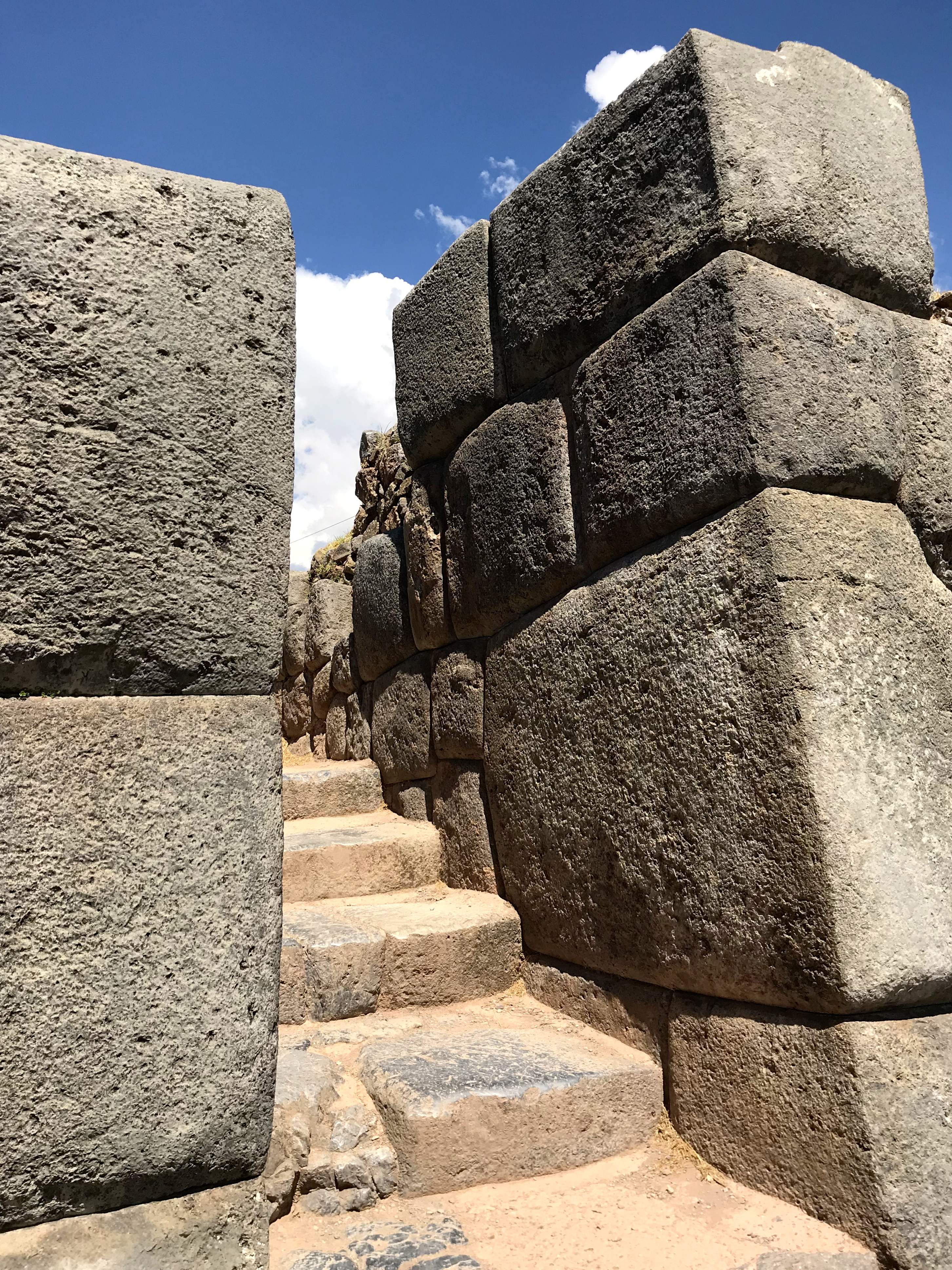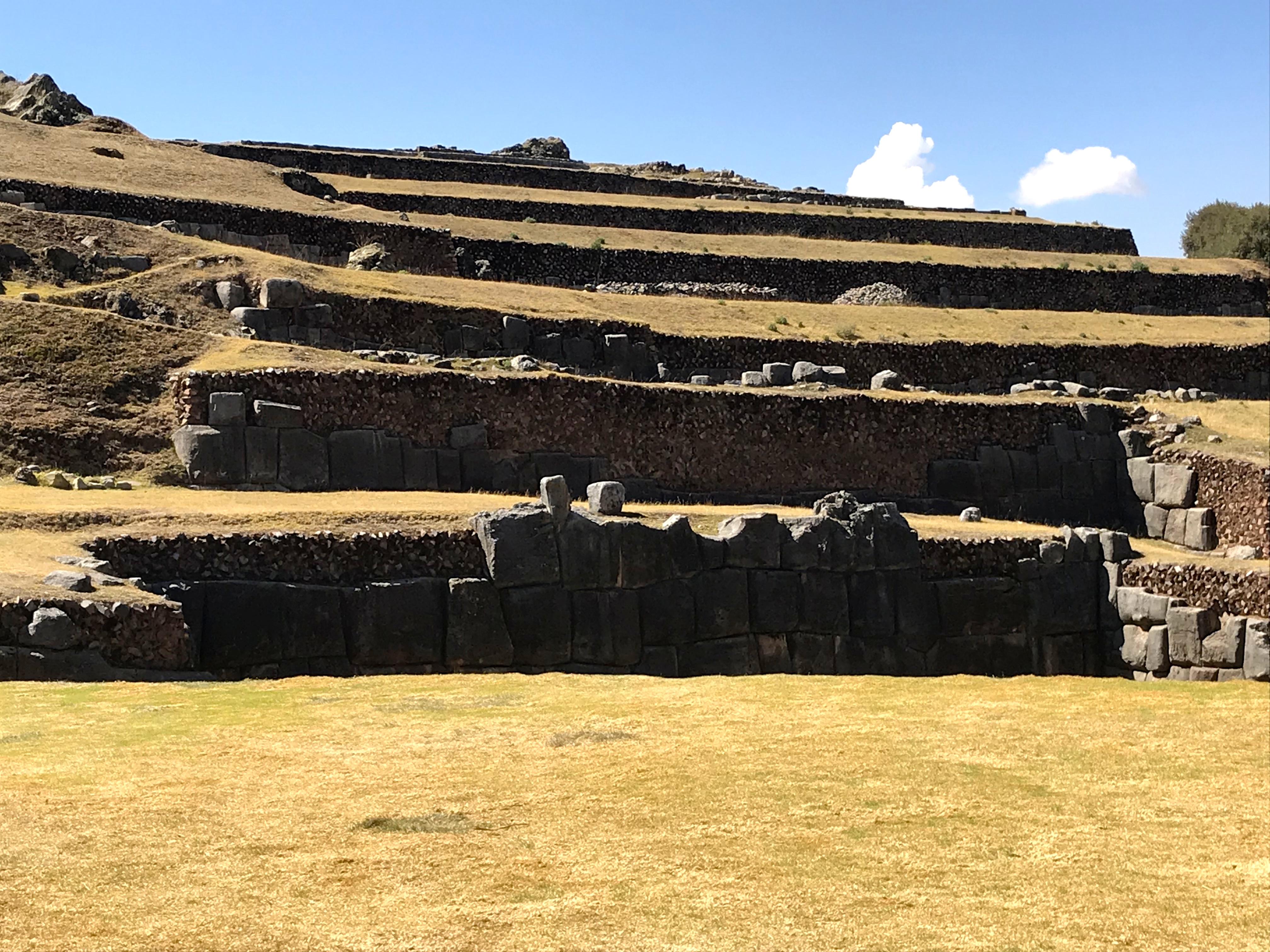 The next morning, I got up feeling a little altitude sickness, but nothing a little coca tea would not relieve. I went downstairs, met the group, and had breakfast. Our first stop on the way to Ollantaytambo would be Sacsayhuamán, a citadel on the northern outskirts of the city of Cusco, Peru, the historic capital of the Inca Empire. The Killke culture first built sections about 1100; they had occupied the area since 900. The complex was expanded and added to by the Inca from the 13th century; they built dry stone walls constructed of huge stones. The workers carefully cut the boulders to fit them together tightly without mortar. The site is at an altitude of 12,142 ft and has a beautiful overlook of Cusco. The shear size and magnitude of these structures are impressive, and to think only about 30% of the original structure remains today.