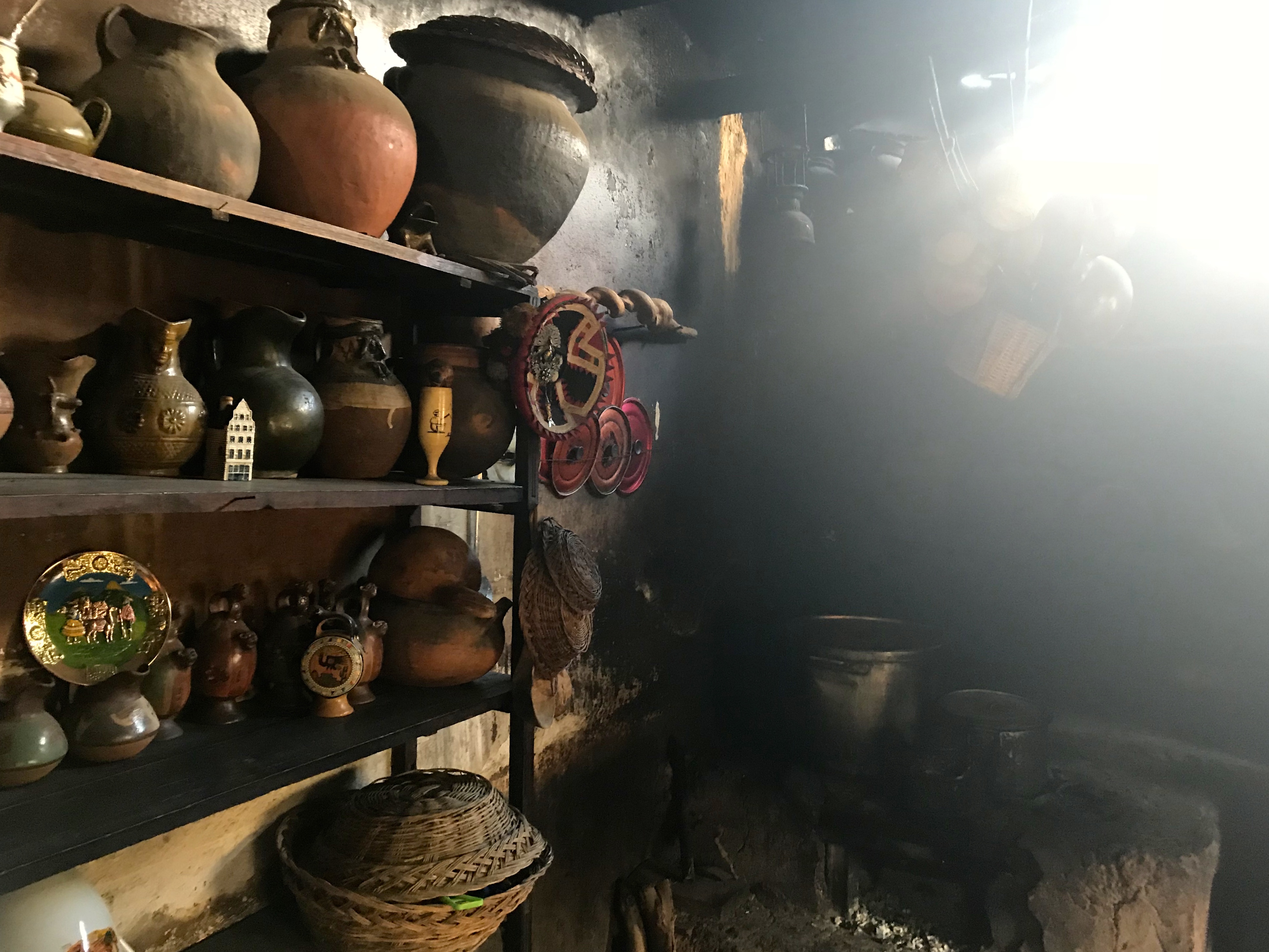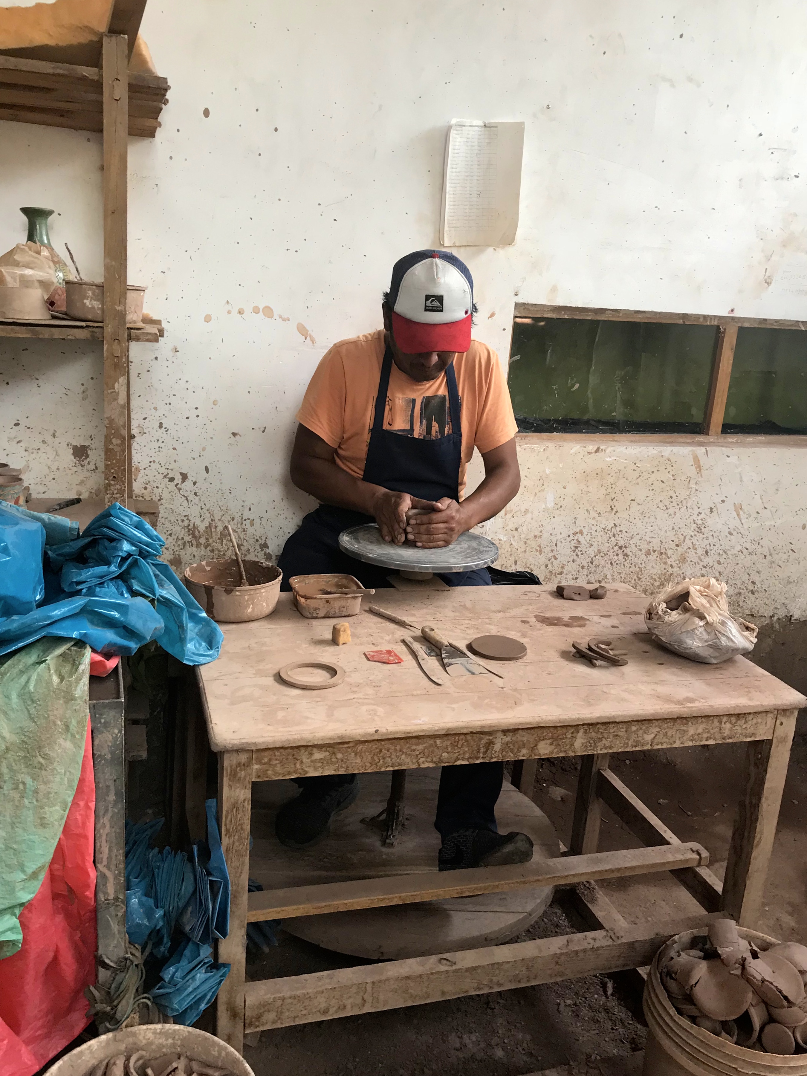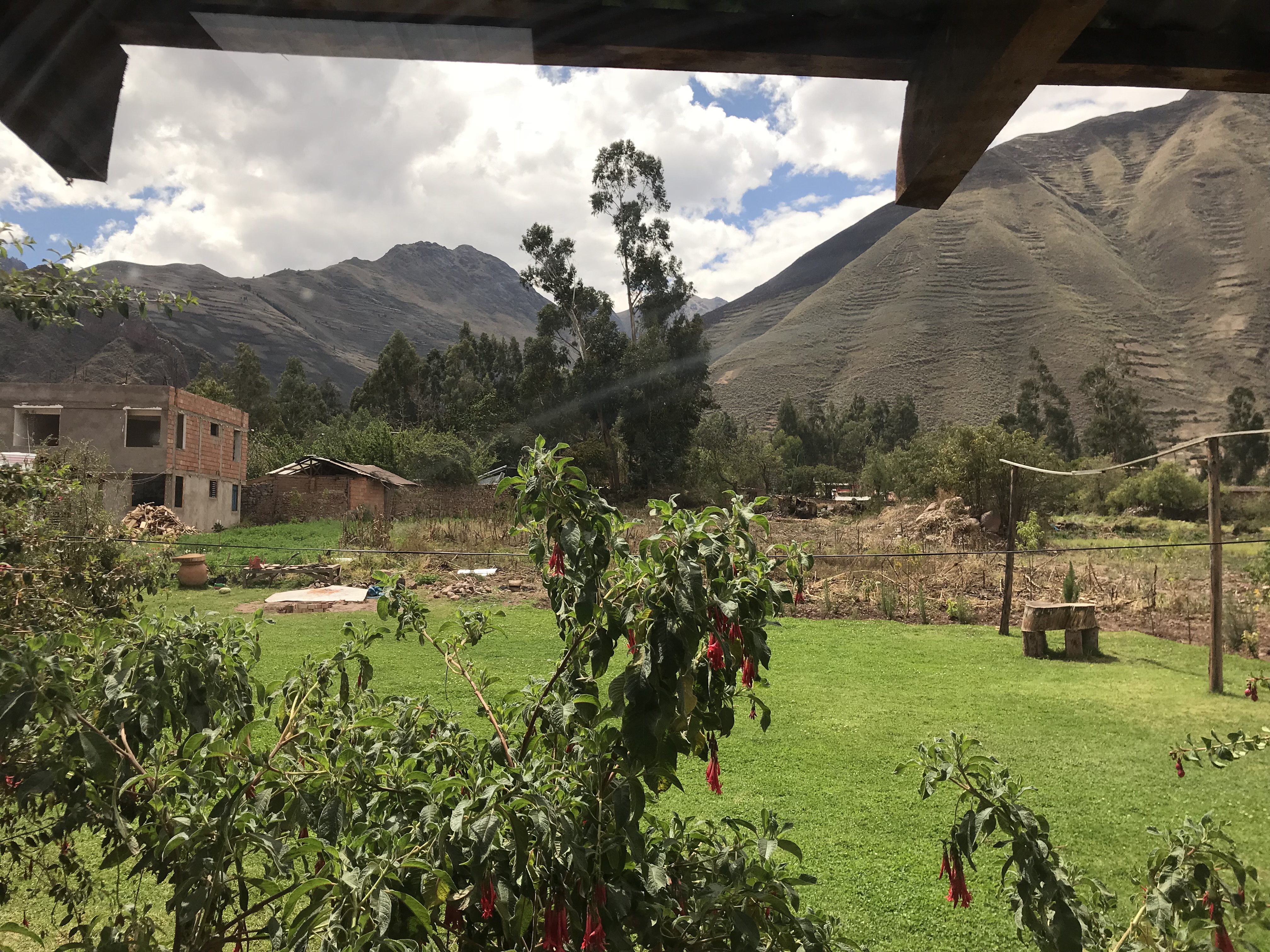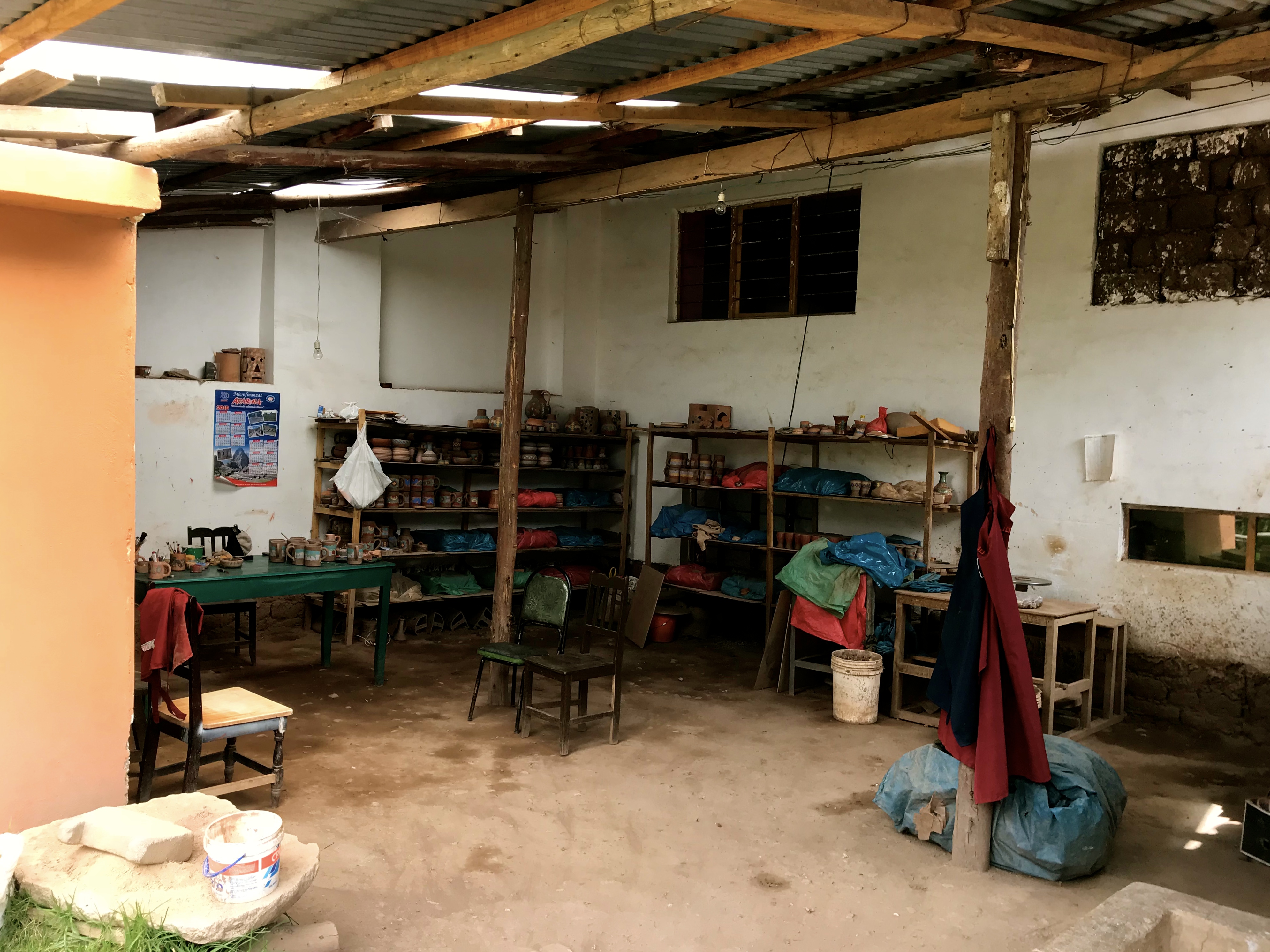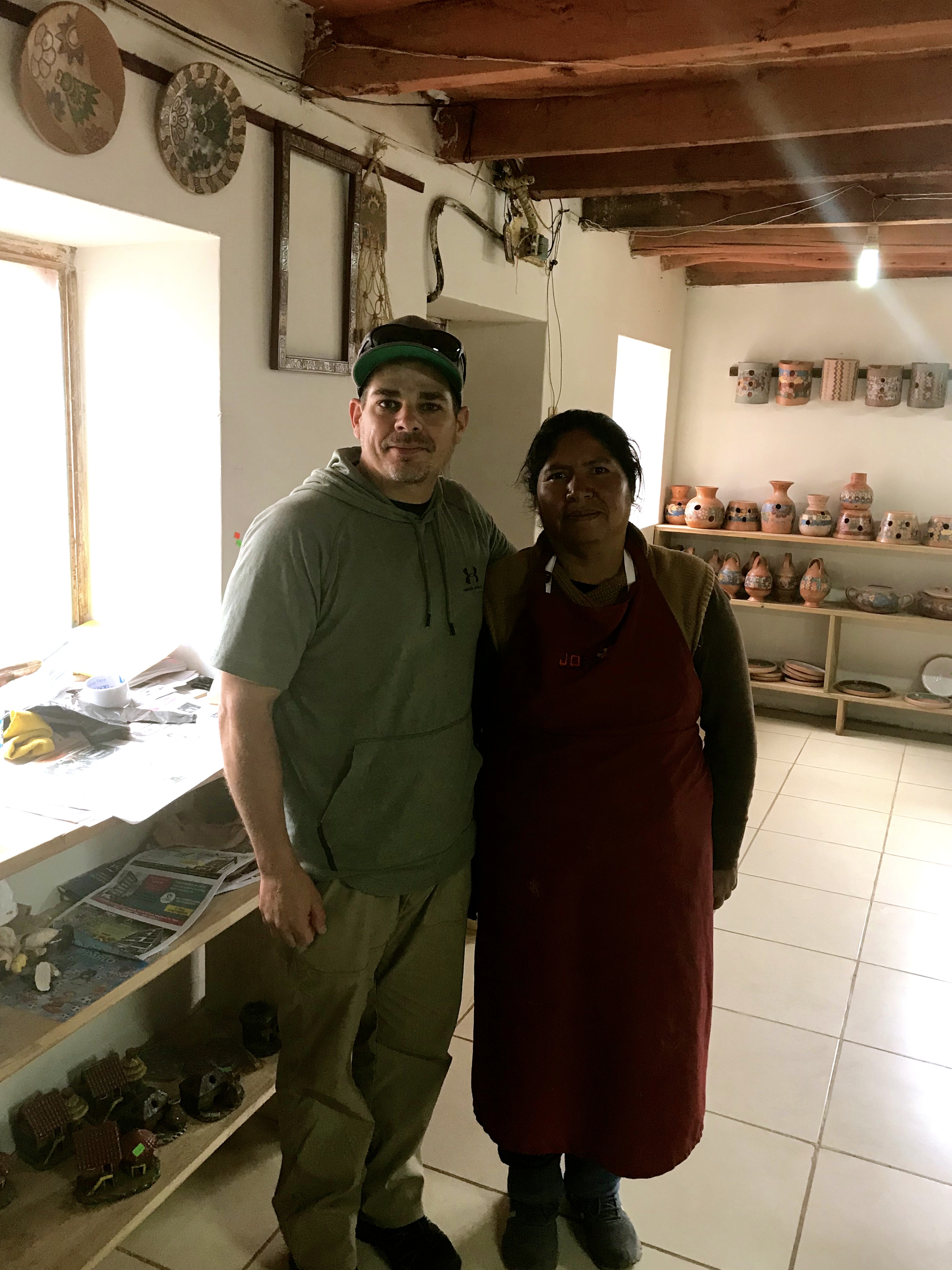 After leaving Sacsayhuamán, we headed back to the van to continue our drive through the Sacred Valley on the way to Ollantaytambo. Along the way, we stopped to visit with a family that made pottery and hosted travelers. I was excited to experience this because I took ceramics in high school and college, which interested me. The family was gracious and prepared a delicious meal consisting of potato soup made from dried potatoes, avocado salad with bread, and chicken with rice. Also served with the meal was Chicha, not the beer but the purple non-alcoholic drink made from corn. The meal was delicious, and the hosts could not have been more genuine and kind. After talking for a while, we followed them to their studio to create their pottery and watched them work. As they began to work, I could immediately tell how skilled their technique was and that generations of family members had perfected it. They maintain their tradition from the way they cultivated the clay from the local mountains to the kick wheel they use to spin the pottery, the decoration technique, and the kiln they used to bake the pottery.