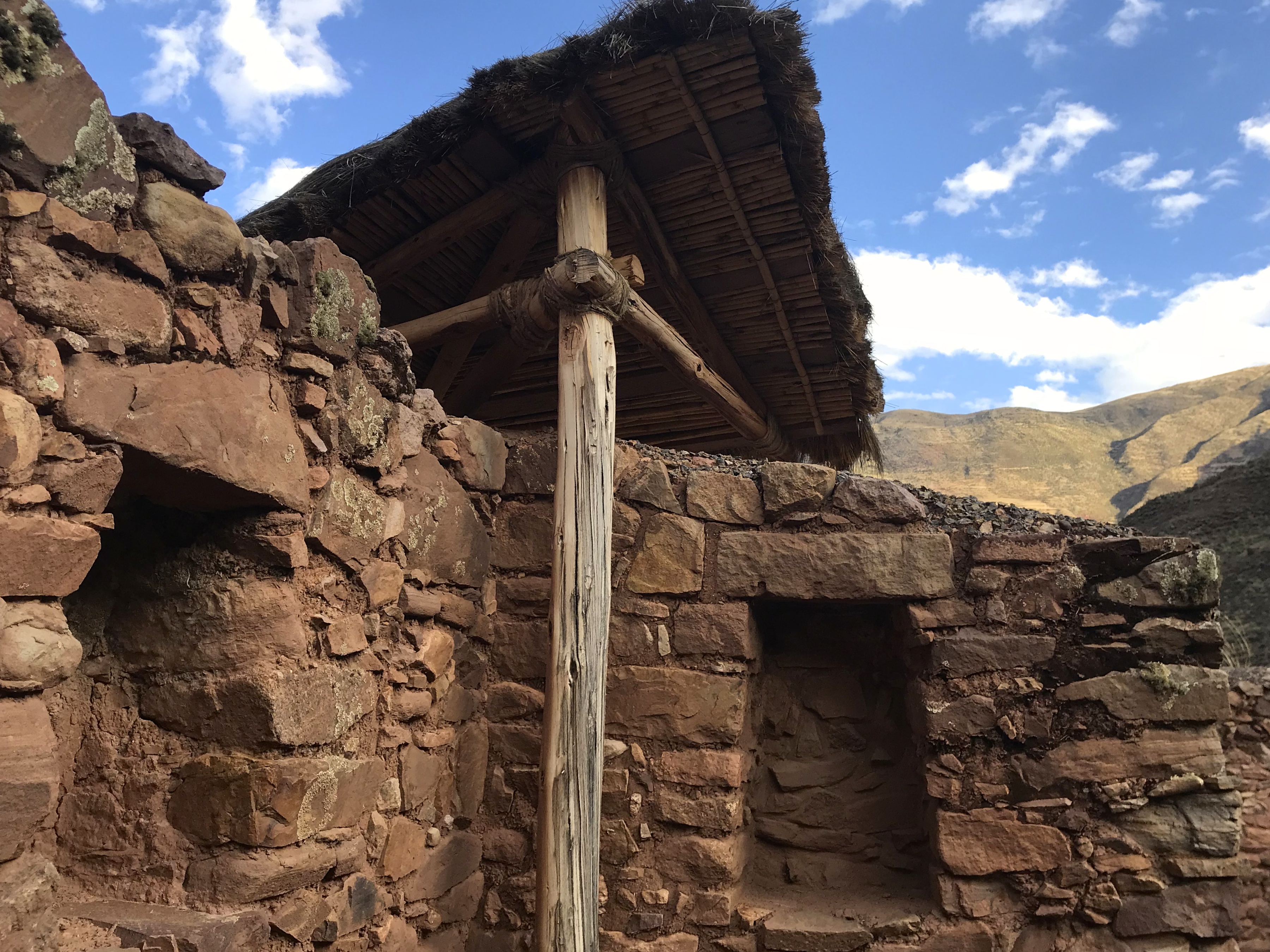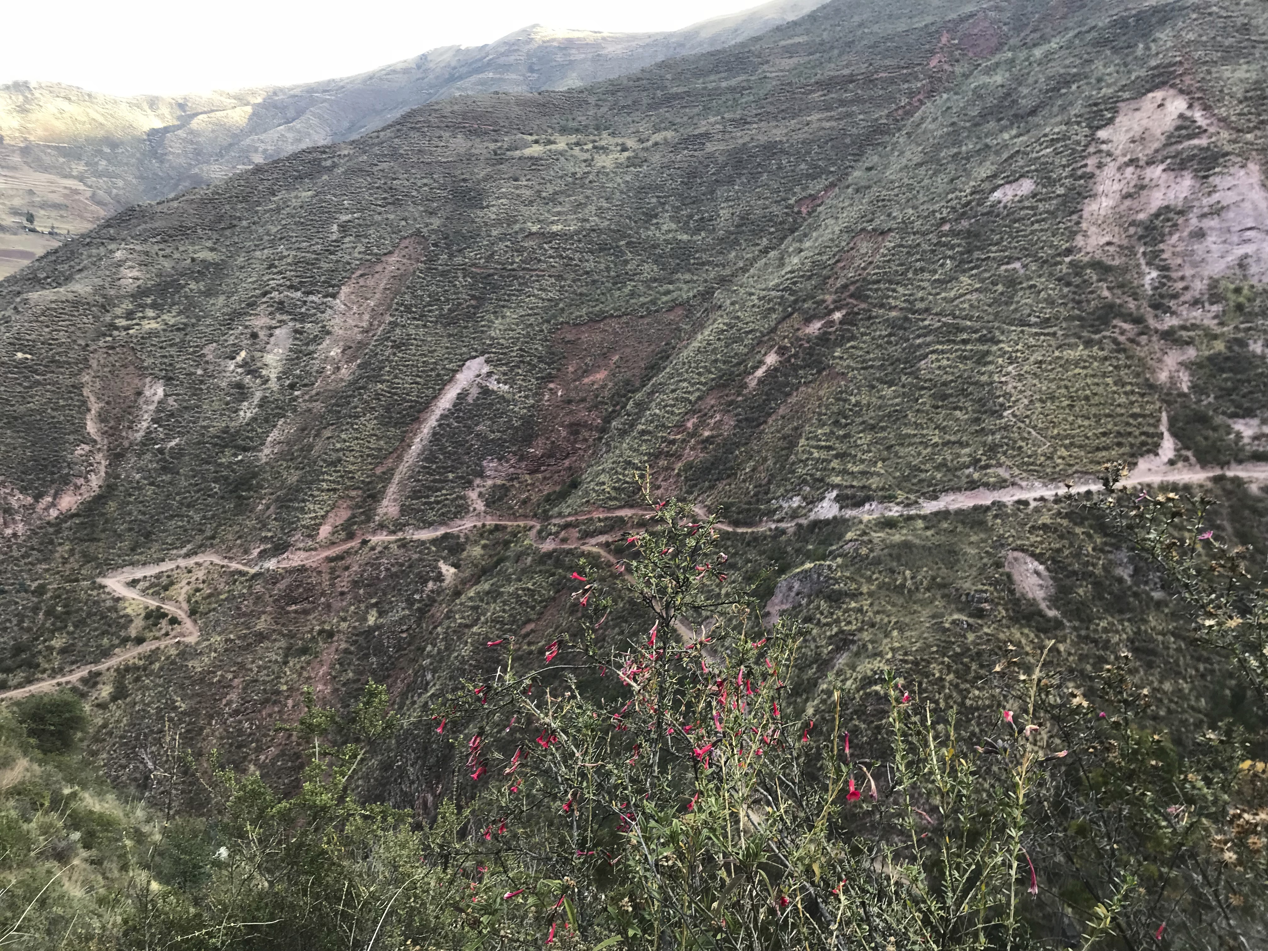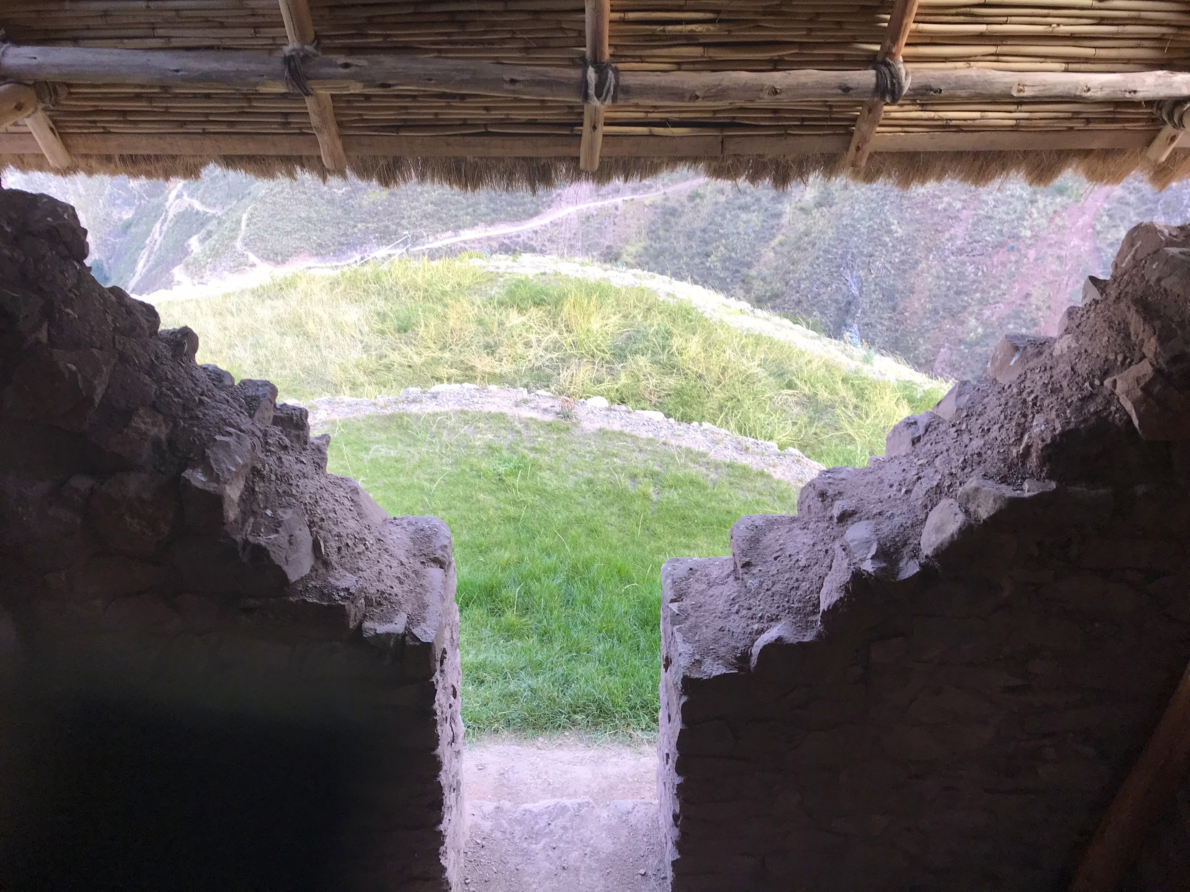 I woke up around the same time and the same routine. Today’s hike would be the easiest of all the days as we hiked through the Sacred Valley down into Ollantaytambo. Since we had descended so much yesterday and would continue today, the weather got warmer, and the oxygen was more available in the air, and my lungs were appreciative. As we continued hiking, Hugo had mentioned to me previously about ancient tombs up into the mountains that were far from the trail, but he would take me when we got to that point if I was interested and had the stamina. Robert and I were game, so we left our bags with the rest of the group, who were gracious enough to wait, and hiked up the side of the quarry mountain to the ancient tombs.