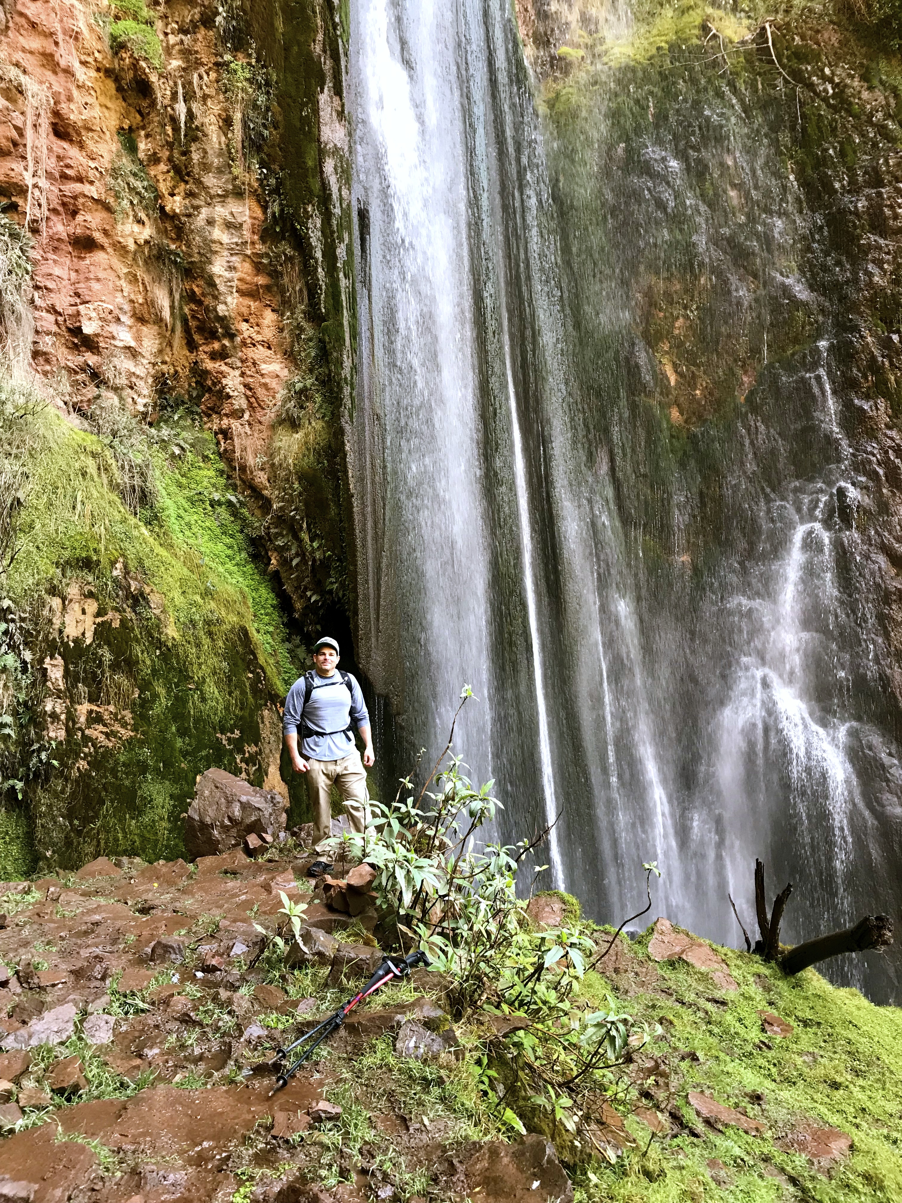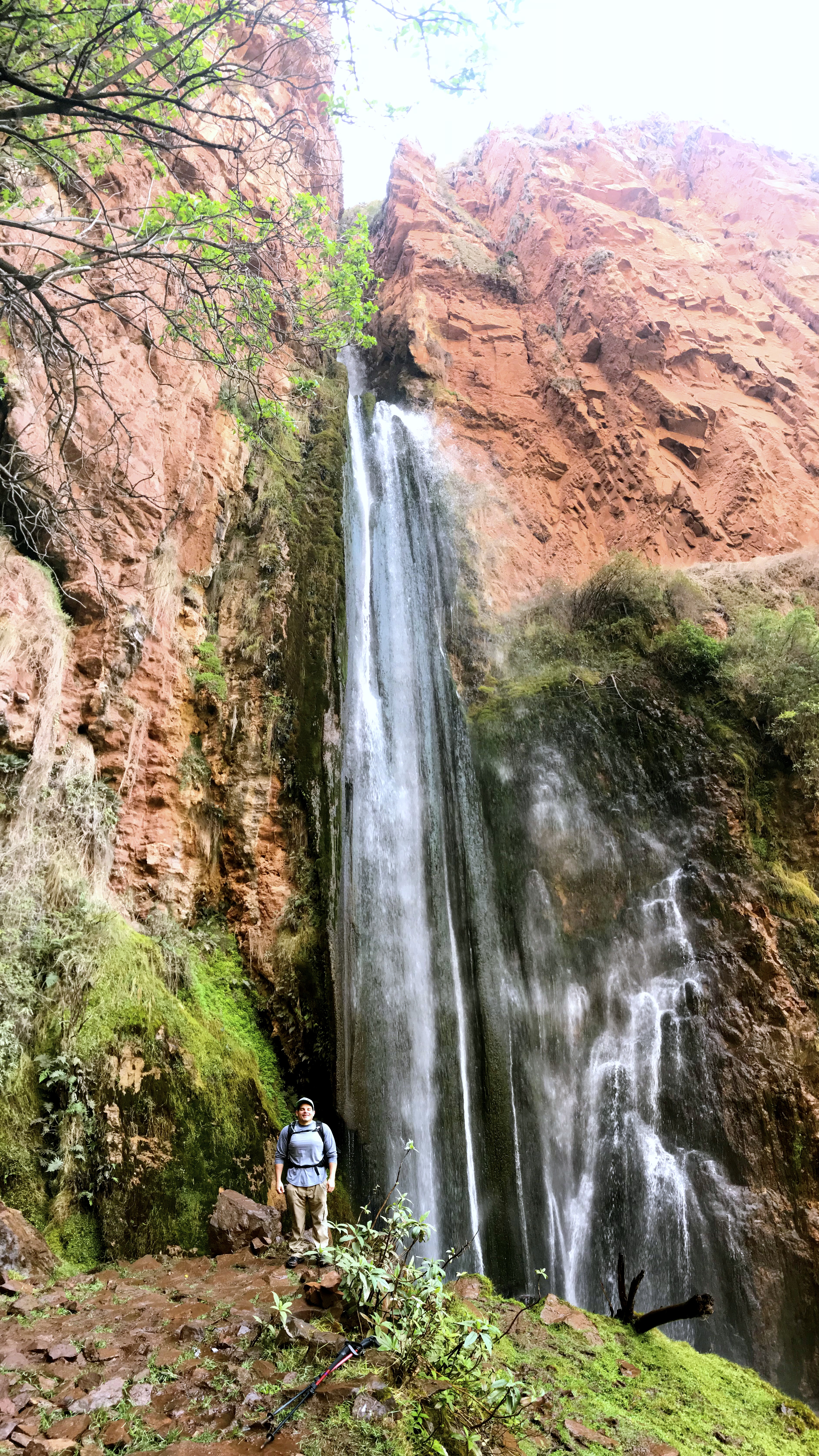 As we continued to walk, the terrain got steeper, and we could begin to see an immense waterfall in the distance. We continued to hike until we came to the base of the Perolinyoq waterfall. The waterfall’s power and presence were all-encompassing, and it is undoubtedly one of the most beautiful waterfalls I have ever had the privilege of being in the presence of. Hugo told the legend of a mermaid-like woman that lived behind the waterfall and would come out at night to scavenge for hikers food and equipment.