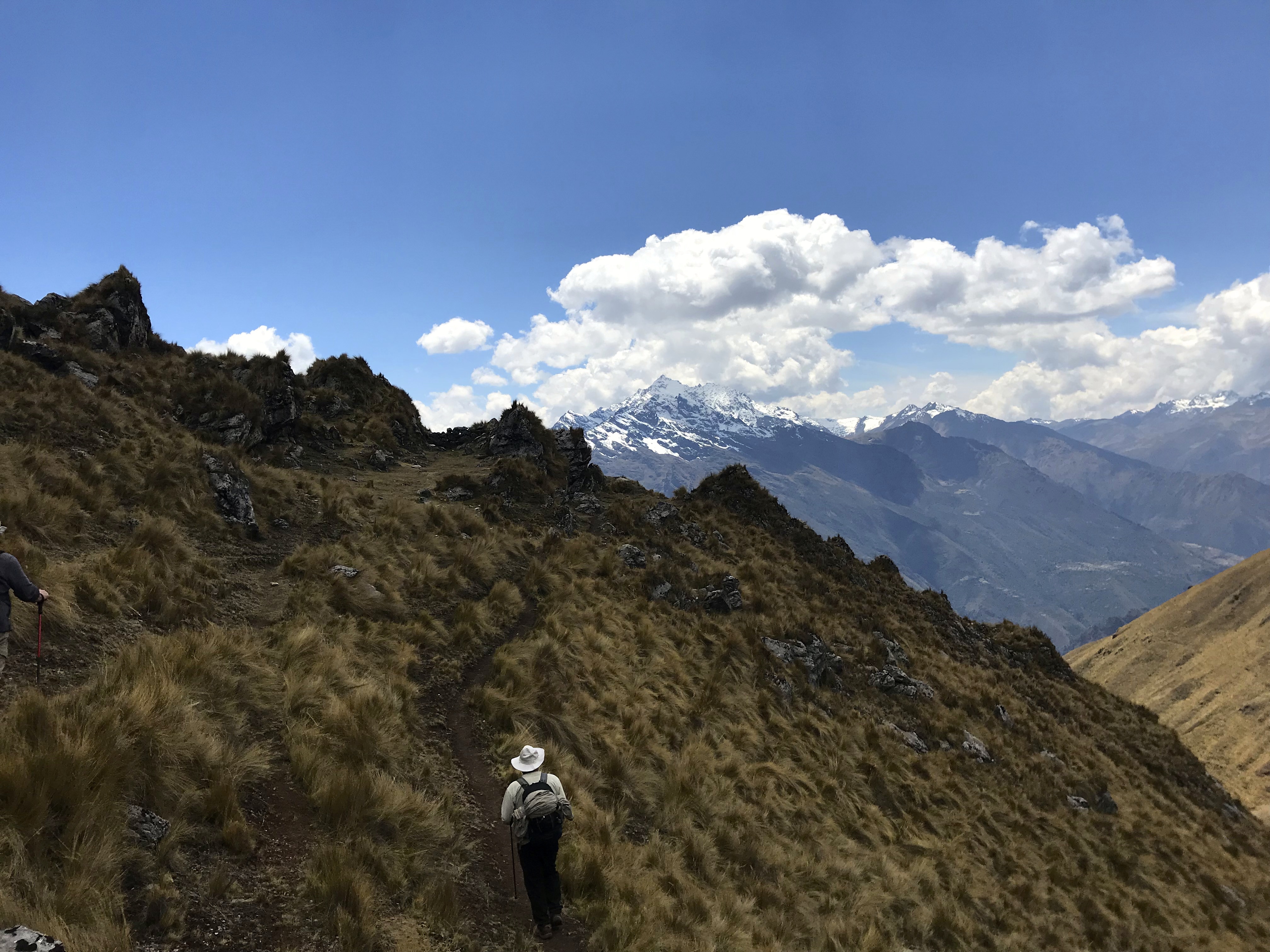 I walk up the next morning around 4:30, got my boots and jacket on, and headed over to the main tent for breakfast. A few people were having altitude sickness and did not sleep well, so they took medication, which helped them some, but Hugo insisted not to take the medication that the side effects were terrible and to drink coca tea. After breakfast, coffee, and conversation consisting of what the days hiking would consist of, everyone went back to their tents to load up. After getting everything situated and water bladders filled up, Hugo handed us all a bagged lunch, and we began our hike around 6:00.Hugo had let us know that day two would be the hardest with the steepest accents and longest distance. I felt good and was excited about the challenge. After hiking for about two hours, we were at a very high altitude, about 14,500 feet, and breathing became even more challenging. So our paces slowed, and our breaks became more frequent. The landscape was so dynamic yet peaceful with a wide range of sights and smells. After another few hours, we stopped to eat our bagged lunch. By this time, the temperature had warmed up, and the sun was intense. I re-applied sunscreen and striped a layer of clothesWhile eating my lunch and conversing with the group, Hugo answered a question about local culture and wildlife. He explained that the Condor was one of the most sacred animals to the area and much of Peru. As we came to one of the steepest climbs, Hugo asked if everyone was ok and that the next 1000 yards would be challenging but rewarding. We all shook our heads, some more sure than others, and pushed on, frequently breaking as my heart pounded out of my chest. As we reached the top, we were all rewarded with an unbelievable view of the Andes’ snow-capped mountains. It was breathtaking, not just because of the hike and lack of oxygen but also because of the mountains’ power. I sat down and took it all in. It points like this in life. I realized that you learn the most and grow.