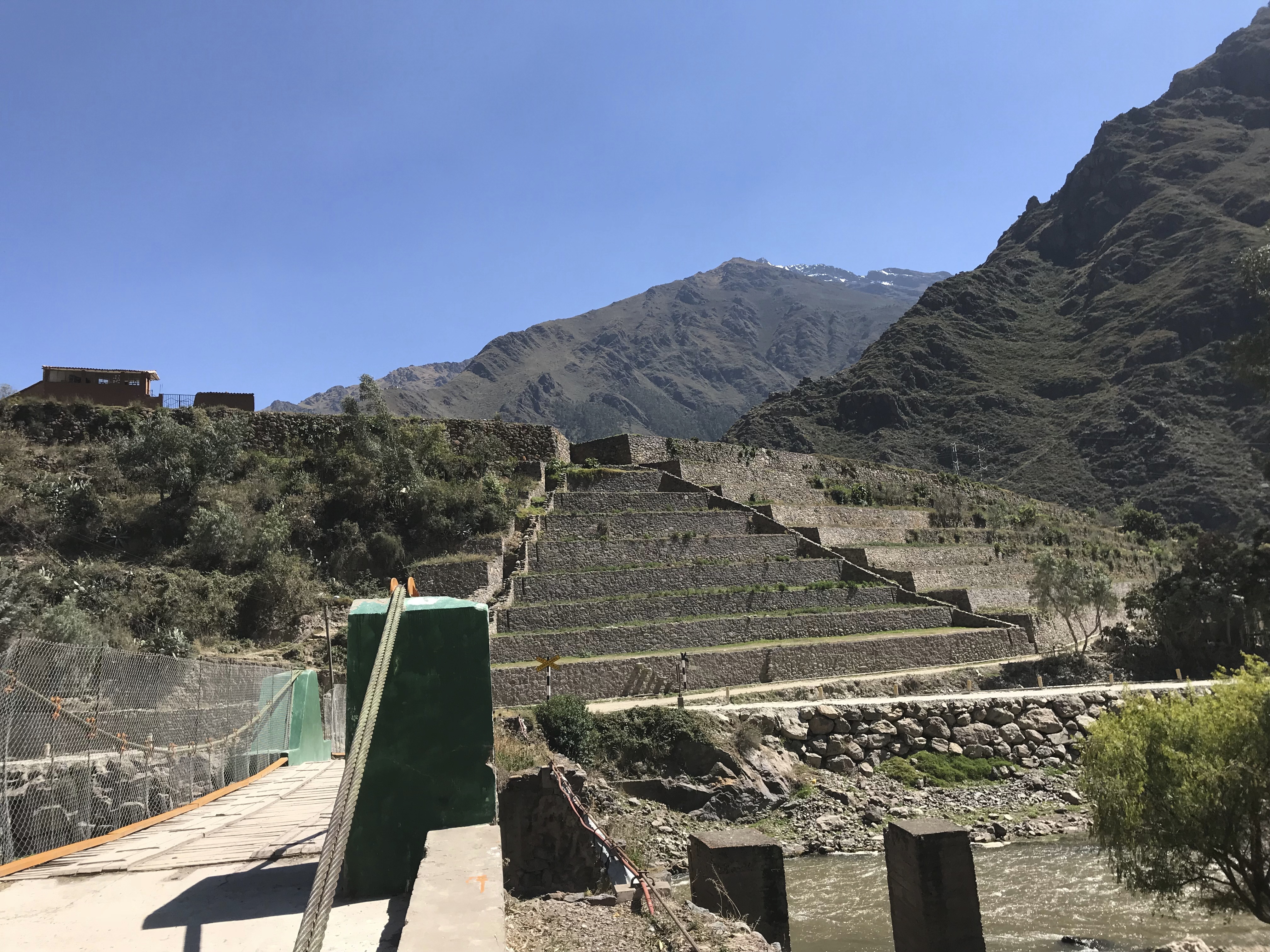 We hiked back down to the group, shared our experience, and headed toward the trail. We hit a few rough patches of mosquitos, which were happy to see me, but I cannot say the same. Hugo explained rubbing leaves from the peppercorn tree would repel then, and sure enough, it worked. We saw some great plants, including San Pedro, a local medicine that produces hallucinations similar to Peyote. We also started seeing animals, small villages, and farms. After a lunch break and a few more hours, we crossed the bridge back into the town of Ollantaytambo. At this point, it felt awkward and strange to be around civilization and so much commotion. My senses were significantly heightened, and I just wanted to hike back up into the mountains. I did enjoy a beer as we headed to the train that would take us to Aquas Calientes, the gateway to Machu Picchu.