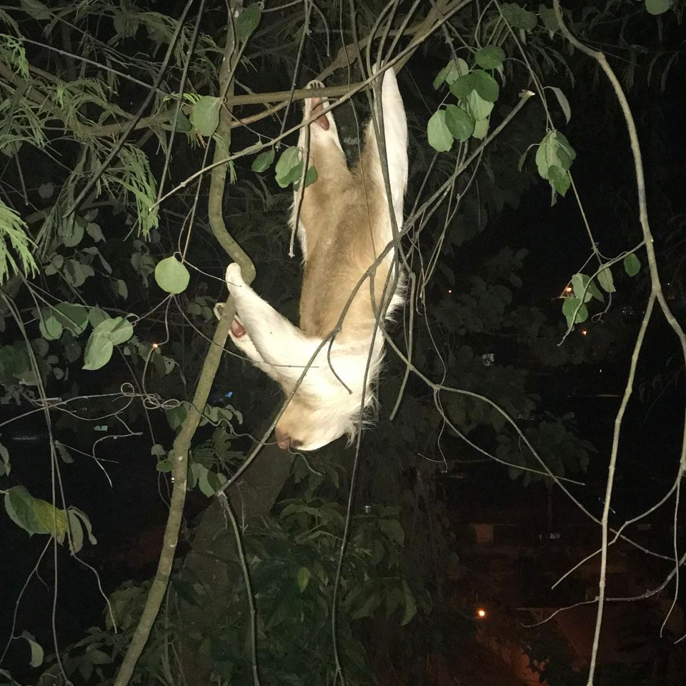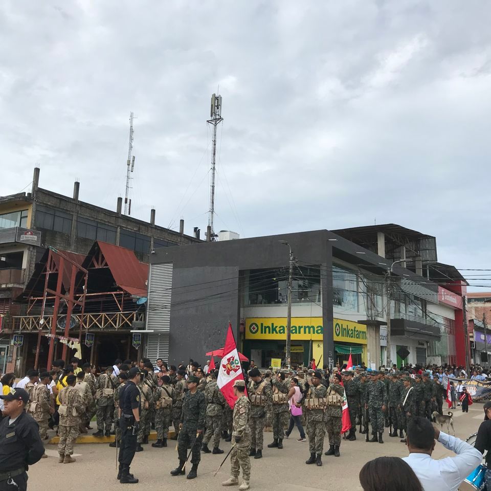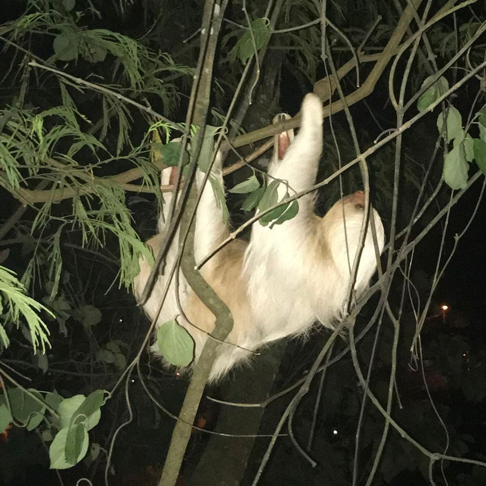 Shirley and I started our morning at Tres De Mayo market with empanadas and juice. All-day yesterday in the main square, La Plaza, the local people celebrated different schools and Peru regions in Puerto Maldonado. Maria, Shirley’s mom, was involved in the celebration and represented Apurimac culture with traditional dress, food, and drink. It was a great day, and I felt blessed to be involved in the festivities. Later that evening, we ate at Burgoo’s, a local restaurant, and had a surprise dinner guest, a “sloth.”