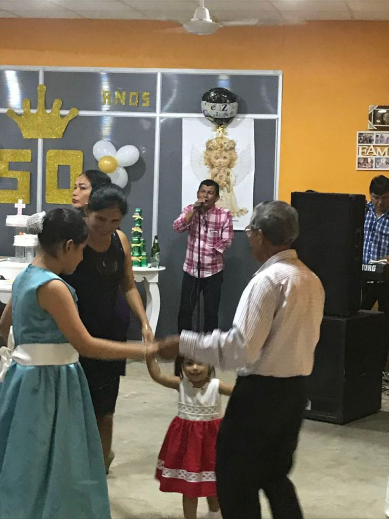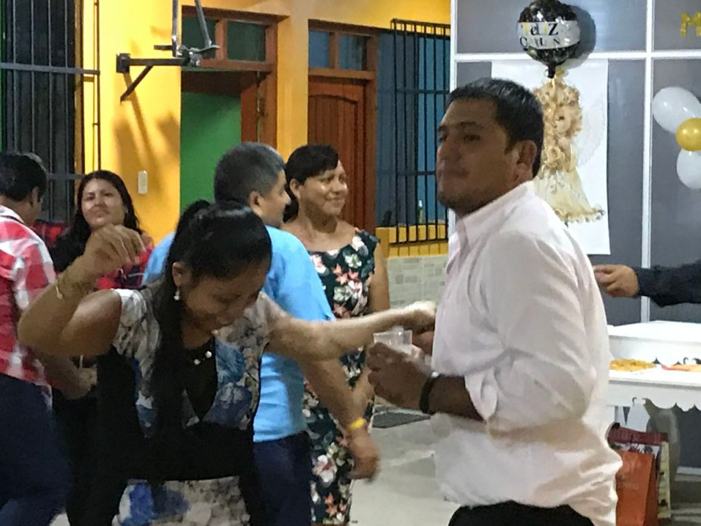 After we left the observation tower, we headed to eat at Puerto Hermosa and check out the Billinghurst bridge, which links Peru to Brazil across the Del Rios River. Back to our apartment to prepare for Baptism after a short siesta, which is customary. I was so thankful to be included in the festivities and felt alive with spirit. After a mass at a beautifully simplistic catholic church, we went to Omar’s uncle’s house rounds of drinks and many courses of food. The Peruvian people are incredibly generous and pride themselves on hospitality and drinking. After many more drinks and everyone enjoying dancing, Omar’s mom asked me to dance, which I graciously accepted but warned her that I was not a great dancer. Everyone had a good laugh as I tried my best to keep up with her with little success. The evening ended with hugs and kisses from everyone and a tuk-tuk ride back to our apartment in Dos De Mayo. Both of us have had one too many drinks were lucky enough to give clear enough directions to the driver. Celebrations in Peru are something special, and being able to experience them from the inside is something I hold near to my heart.