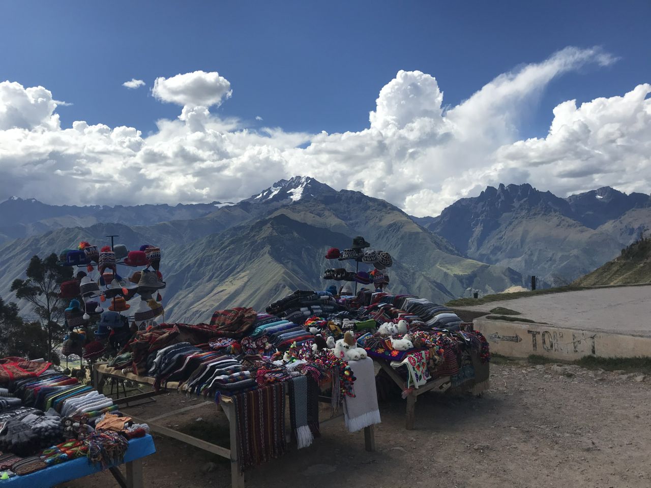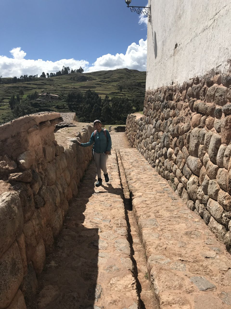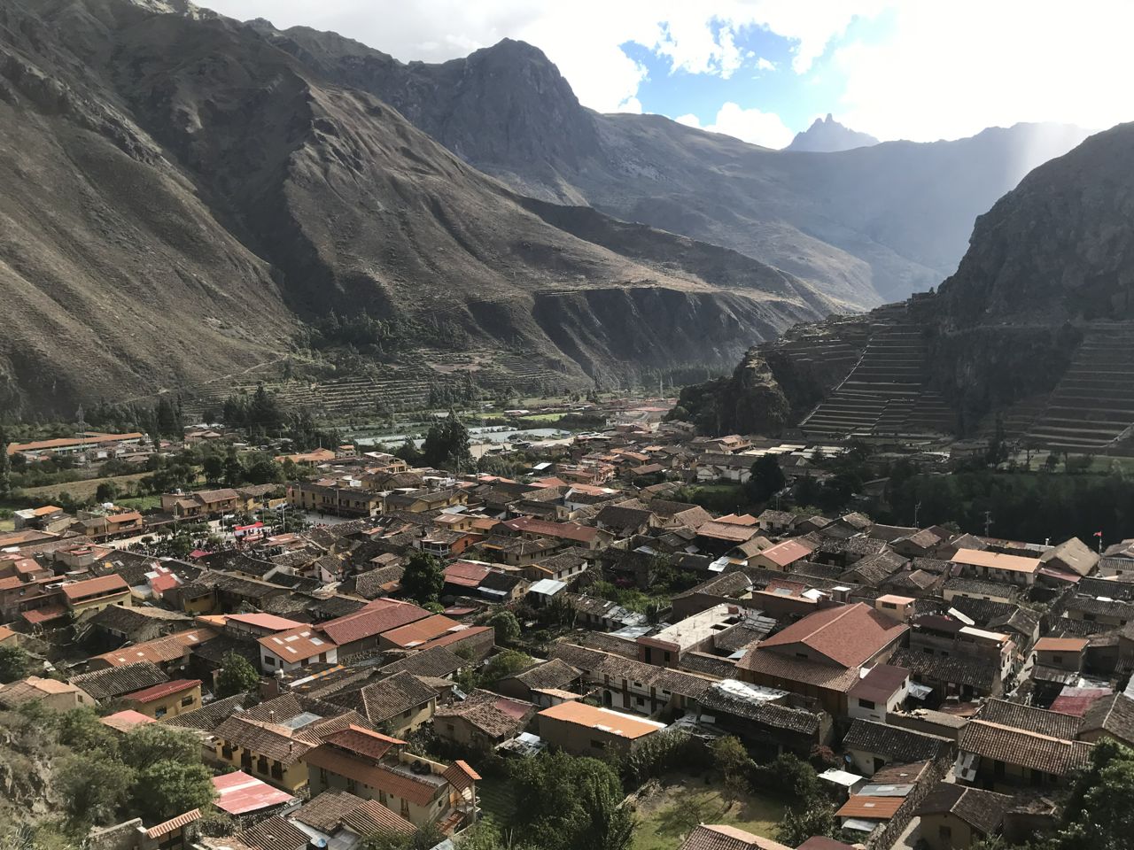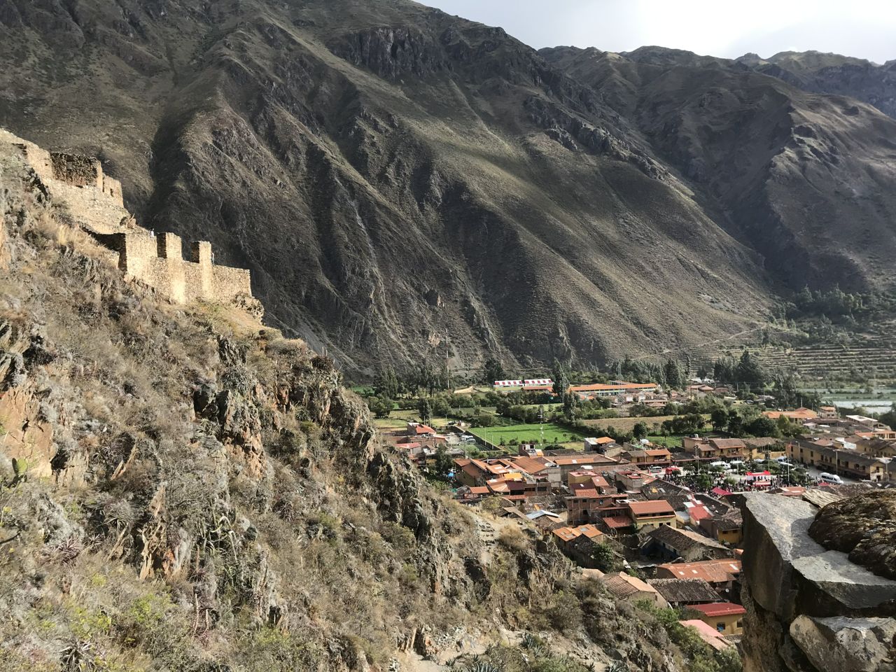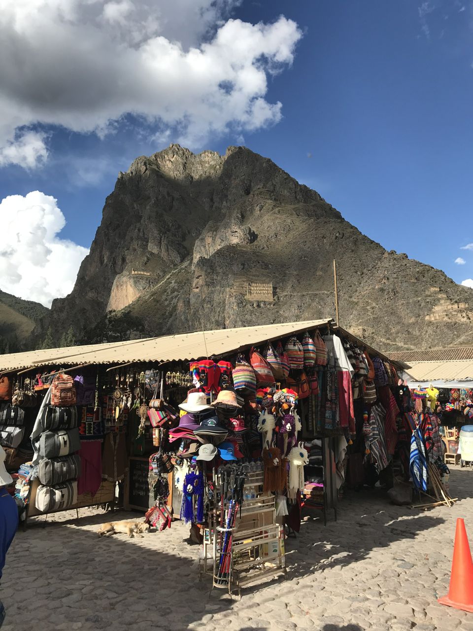 Upon arriving in Chincheros, we saw many Alpaca and a small, close-knit community centered on raising Alpaca and producing goods. Our driver explained he could take us the back way into the nearby ruins on the Urquillos Trek and see from a different perspective. Shirley and I decided to take the hike with our driver being the guide. The ruins were incredible, and the way the rocks were carved almost looked cast into form. At the end of the hike, we came upon a church built on Inca Ruins in the 1600’s “Iglesia Colonial de Chinchero” kinda disrespectful. Still, I must say the church was incredible and felt like something out of Indiana Jones. No photos are allowed inside, and a guard follows you around inside, but the floral and religious paintings throughout are breathtaking. I went up to the altar and said a prayer for mom and grandma with tears in my eyes. I thanked them for the experience. At that moment, feeling so close to my heart as We left the church with Shirley comforting me as we came upon a plaza filled with women selling every variety of alpaca goods in a wide array of colors using mostly natural dies. It is familiar with some products like rugs and bags mixed with wool and are less expensive but need to be aware of or may pay for full Alpaca and get 50% wool. We looked around as our driver/guide. The women of the Andes mountains have been making these goods from Alpaca that go back in the same tradition for hundreds of years. After Shirley covered with the women, we decided to buy a rug and bag made with natural dyes by hand from 100% alpaca for a reasonable price as samples of things we are looking to have made for our business Alpaca Trueke. We headed toward the car and decided to continue to the Sacred Valley and Urubamba. The drive is fantastic, with incredible views of the Andes mountains and valleys. Open arriving in Urubamba, we decided to stop at a local place and drink some Chicha and play Sapo’s game. After enjoying the company of the owner of the establishment and her dog, we continued to Ollantaytambo and the ancient Inca Ruins.