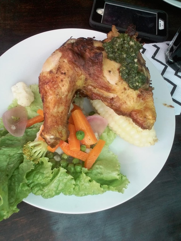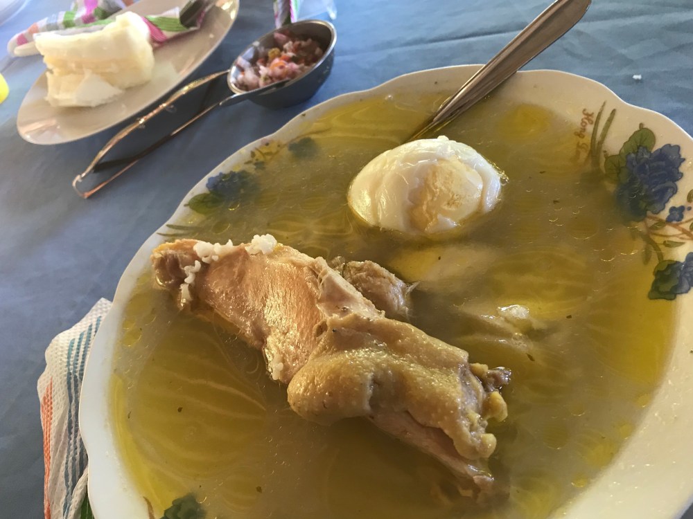 During our time staying with Shirley’s family in Anancy, the Apurimac region of Peru, I had the opportunity to eat a fantastic soup made from duck, cilantro, tomato, onion, black beer, and rice. The soup was made by Shirley’s aunt Beba for her uncle Ramiro’s birthday, and the soup is called “Aguadito”. Perhaps one of the most delicious soups I have ever tasted. Ramiro’s birthday celebration was beautiful as all celebrations in Peru are, and everyone appreciated the soup Beba spent all day making. We ended the evening with many rounds of drinks, a soccer game between the US and Peru, which coincidently ended in a tie. Shirley’s Uncle Omar and Aunt Iza, who were the most amazing hosts took us to a local restaurant in Abancay called Araujos with a really unique atmosphere, mostly outside with various grilled meats, potatoes, and corn. I had Baked chicken with salad and corn “choclo” with chemichurri sauce which was very tender and juicy filled with flavor, and the small purple potatoes that are sweet are perfect compliments. For more on my experiences in Abancay, see previous blogs “Lima to Abancay” and “Choquequirao, Sayhuite, and back to Abancay.”