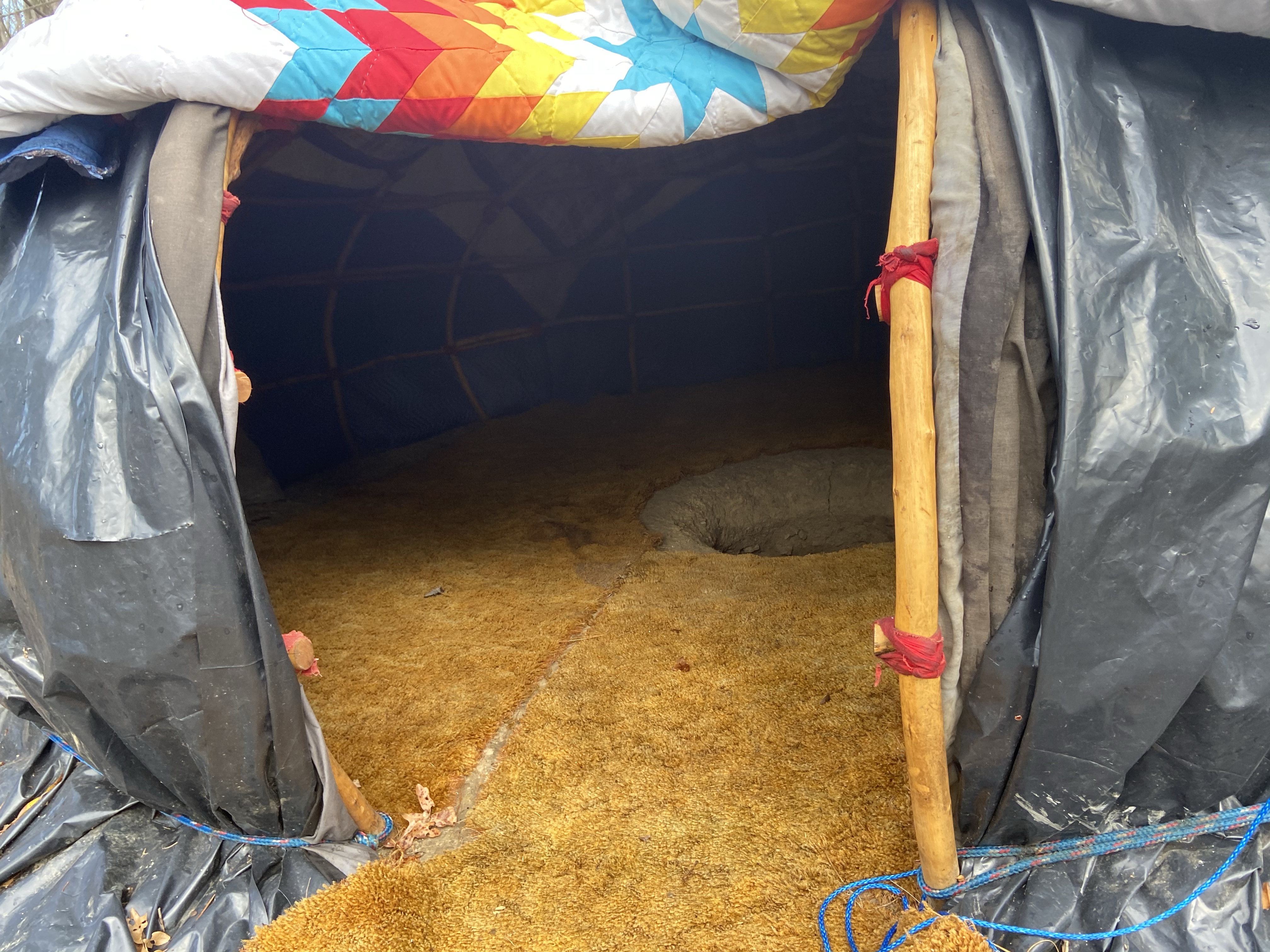 Orientation – The door may face a sacred fire. The cardinal directions may have symbolism in the culture that is holding the sweating ceremony. The lodge may be oriented within its environment for a specific purpose. Placement and orientation of the lodge within its environment are often considered to facilitate the ceremony’s connection with the spirit world, as well as practical considerations of usage.
