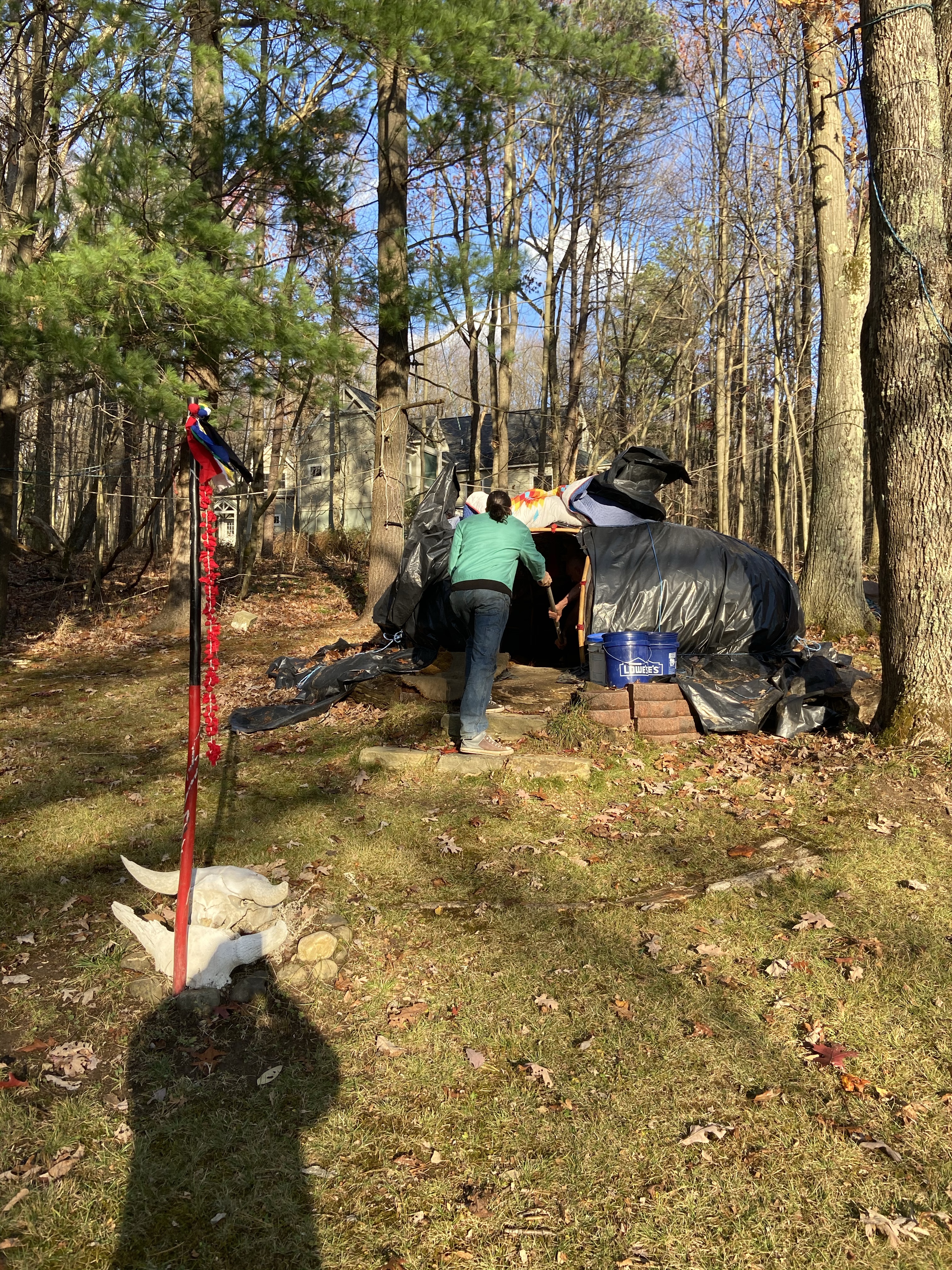 Over the weekend I had the opportunity to participate in a traditional Native American sweat lodge Ceremony (Inipi) with the invitation from my great friend and spiritual brother Chad. The I-ni-pi ceremony (lakota: ini- from inyan, rock + -pi, lodge), is a type of sweat lodge, is a Lakota purification ceremony, and one of the Seven Sacred Rites of the Lakota people. It is an ancient and sacred ceremony that has been passed down through the generations of Lakota. Chad had been participating in said ceremonies for about a year and is learning the very intricate details of fire tending and all the traditions associated with the ceremony. On Sunday I drove down to Chad’s house and picked up lasagna at Colasante’s Ristorante in Morgantown, WV on the way as an offering for the ceremony which is part of the tradition. Once I arrived at Chad’s house, we got prepared by burning sage and listening to native American drumbeats. After which time we loaded up our backpacks with towels and we headed to Deep Creek, Maryland where the ceremony would take place. Smudging is a common practice among Lakota people for the cleansing of energy through the burning of sage, cedar, and sweet grass. These substances emit certain smells that are pleasing to the Great Mystery. Sage is the cleanest smell of the desert, and is also given to us by the Creator.