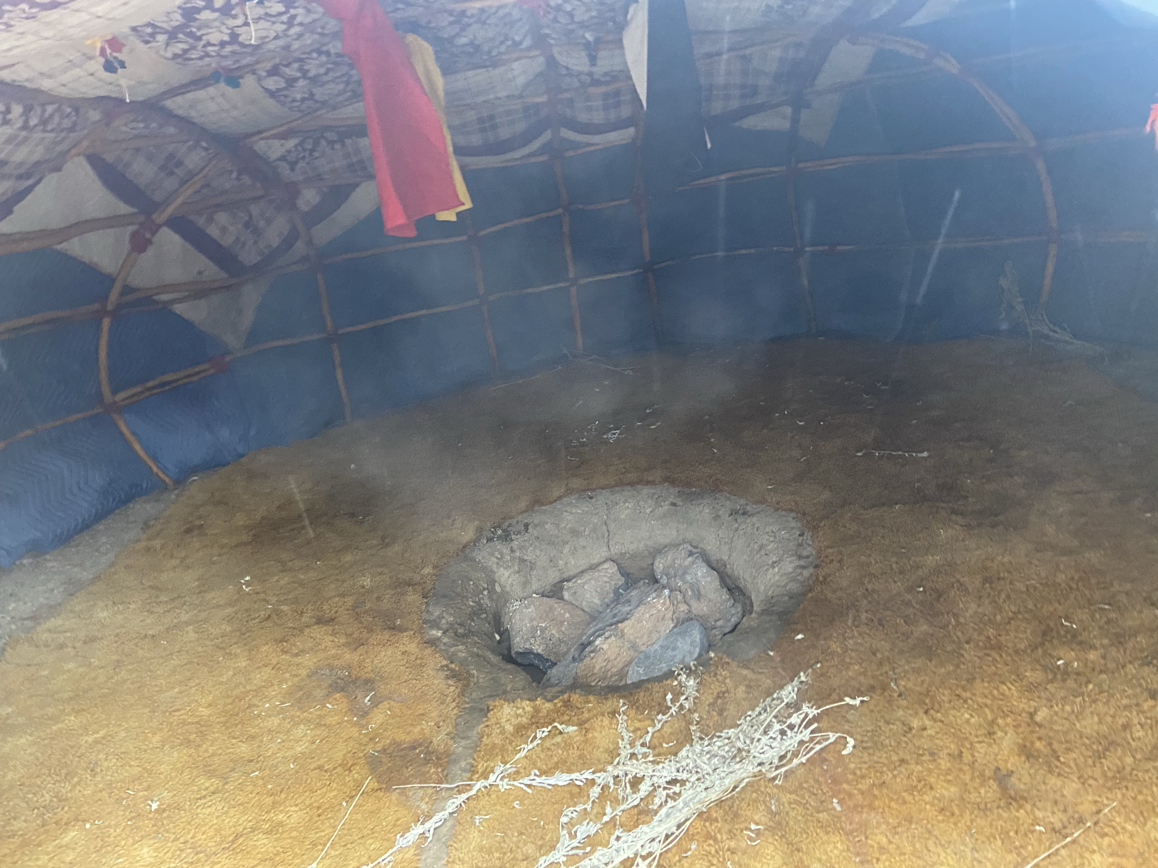 The Inipi frame is built from willow branches and constructed in a very particular way so that the energy flows correctly with the door always facing West. It is covered with blankets and rugs and finally with tarps. Chad entered and took the hot seat, which is the east side of the Inipi, and I handed the buckets of water to Dave before entering the Inipi on my knees. Once inside, we hung our prayer ties above us, but I forgot mine in my jacket, but he assured me there was plenty to carry my prayers. Dave then gave us a talk about the songs he would sing and closed the door, at which time it became pitch black inside. As Dave poured water onto the rocks, you could hear an intense sizzle and then and an overwhelming sense of heat and steam. Dave then began beating the drum and singing native American songs that were very powerful and immediately brought you into a trance. Dave’s singing was powerful, and the drumbeat intense, but like a maestro, he knew when to bring up and take down the beat. Some of the songs he sang were of the four winds and the thunder gods dating back hundreds of years. As the steam and heat built, I focused on my intentions, and although it took a little time, I was able to make a lot of breakthroughs in my thought patterns and even began to visualize my intentions and how they would play out in the real world. Just as it got to the point of being overwhelming, Dave would bring down the tempo and open the door. We would have discussions pass around a ladle of water, and give thanks before shutting the door and doing it again. On the third time, we passed the Chanunpa (sacred pipe) and smoked some rosewood and tobacco before closing the door and doing another round. We went through six rounds, with the last two being a burnout where Dave poured most of the remaining water onto the stones, which created intense hot steam, at which point I used the balled-up sage to breathe through. The further you get into the session, the more intense the visuals become, and determined to break free of negative patterns and truly focus on your intentions.