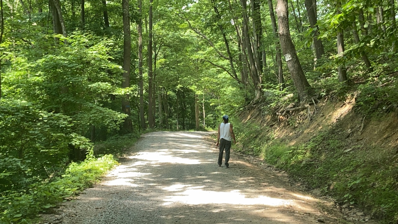 The next day we began by organizing all of the necessary items for the totem, which consisted of many animal hides, bones, oils, feathers, alpaca wool, deer antlers, and other items to establish a connection with mother earth. We continued to work on the frame of the Inipi, inserting and bending the ribs of the frame into place and then constructing the entry to the Inipi. We captured a rainbow that had developed over the hill behind the Inipi as Chad and Adam were tying the final knots. We felt this was a sure sign that we had the blessing of the great spirit. We then went down to Blue Hole, a beautiful local area, to look for the rocks that we would need to heat the Inipi. We found some nice solid rocks but not of the type we wanted, which would be volcanic, but we settled for what we could find in the Hills of West Virginia. After gathering the rocks, we returned to the Inipi and collected all the blankets needed to cover the frame. We then purchased tarps to protect the Inipi and also to make it completely dark inside waterproof.