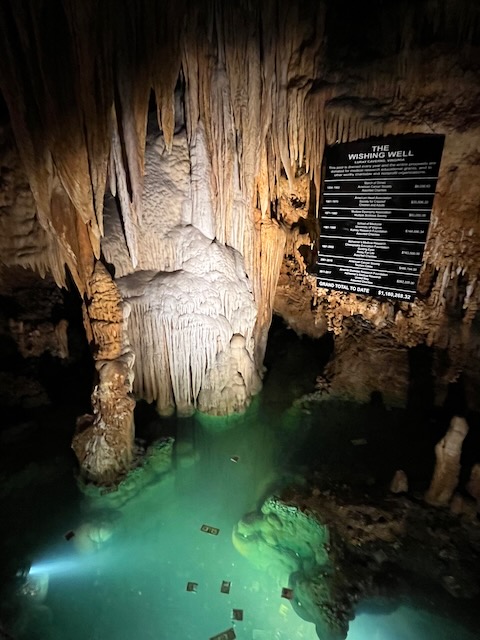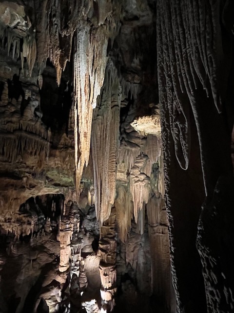The next morning we got up ate breakfast and headed to Luray Caverns which was only about 45 minutes away from the resort. We drove the back roads and really enjoyed the small communities and scenery along the way. We arrived at Luray Caverns pretty early and beat most of the crowds. We got our tickets and checked out the gift shop before venturing down into the caverns. Luray Caverns is a cave just west of Luray, Virginia, which has drawn many visitors since its discovery in 1878. The cavern system is adorned with colorful speleothems such as columns, mud flows, stalactites, stalagmites, flowstone, mirrored pools, and even the a stalacpipe organ. The Great Stalacpipe Organ is an electrically actuated lithophone. Covering 3.5 acres of the cavern, it is considered the world’s largest instrument by Guinness World Records.