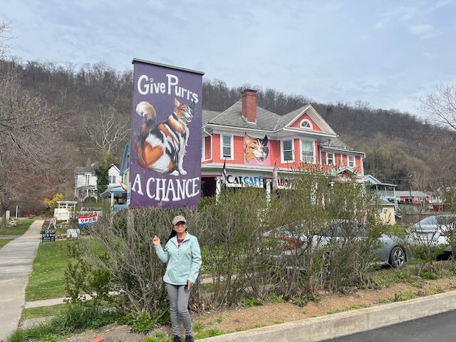 On the Easter weekend of March 29th, Shirley and I decided to visit Berkeley Springs and Cacapon State Park for our 1st Anniversary. The drive took about three hours and upon arriving at Berkeley Springs we decided to visit the park and the natural hot springs. Located in the center of historic Berkeley Springs, Berkeley Springs State Park is home to a mineral spa that has been in use since colonial times. The park is renowned for its warm spring water, which flows at a constant temperature of 74.3 degrees. The park’s Old Roman and Main bathhouses offer a wide selection of spa services, including massages, saunas, baths and showers. We scheduled our time in the Roman bathhouse which gave us about an hour and a half to walk around Berkeley Springs, which is filled with all kinds of unique shops, specializing in alternative medicines and holistic healing. There are also shops with beautiful handmade crafts ranging from pottery to woodwork by local artists. First we stopped at The Naked Olive Lounge to have a drink and a small bite to eat. The owner was kind and made an anniversary dessert for us. After finishing our drinks and dessert we visited a unique Native American store Phoenix Rising of which the man that owns it make most all of the crafts and Jewelry himself. We had an interesting conversation about Native American history and current political events and proceeded on to the next shops until we saw Give Ours a Chance a place where you can adopt the cat or just chill with cats and have a cup of tea. We decided to pass ion the cats and continued on to Inspired Chaos a unique boutique shop carrying all kind of cloths and hand made crafts. By this time our scheduled time for the hot springs was approaching so we returned to Berkeley Springs Roman bathhouse and on the way passed a beautiful painted mural along the side of a building.
